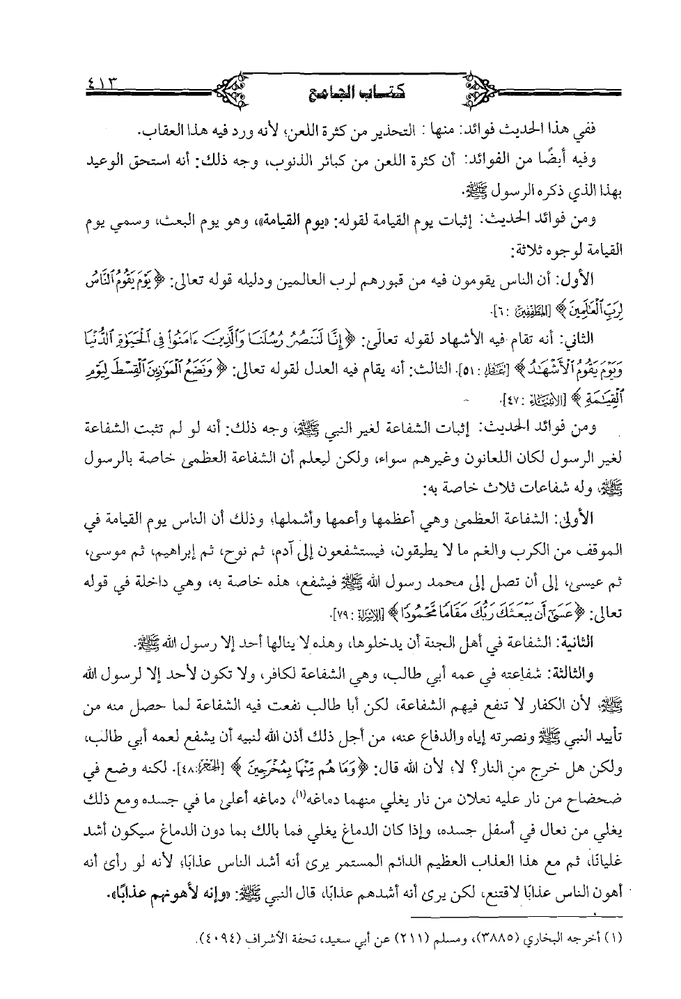 ومن فوائد الحديث: إثبات يوم القيامة لقوله: «يوم القيامة» وهو يوم البعث، وسمي يوم القيامة لرجوه ثلاثة: