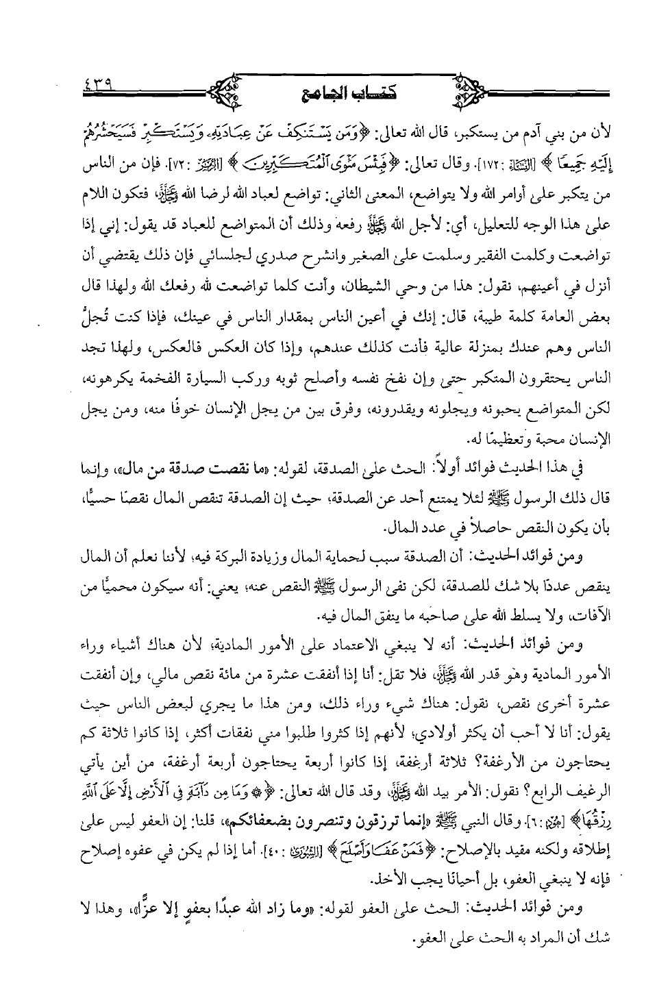 في هذا الحديث فوائد أولاً: الحث على الصدقة, لقوله: «ما نقصت صدقة من مال» , وإنما قال ذلك الرسول صلى الله عليه وسلم لئلا يمتنع أحد عن الصدقة؛ حيث أن الصدقة تنقص المال نقصاً حسياً, بأن يكون النقص حاصلاً في عدد المال.