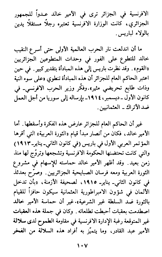 الإفرنسية في الجزائر ترى في الأمير خالد عدوا للجمهور الجزائري، كانت الوزارة الإفرنسية تعتبره رجلا مستقلا يدين بالولاء لباريس.