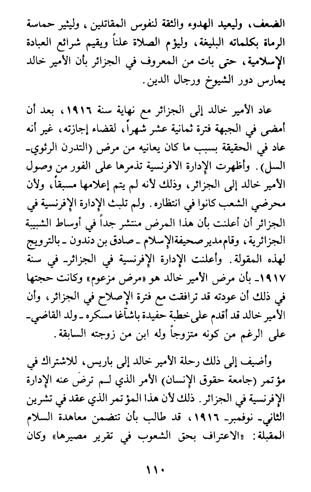 وأضيف إلى ذلك رحلة الأمير خالد إلى باريس، للاشتراك في مؤتمر (جامعة حقوق الإنسان) الأمر الذي لم ترض عنه الإدارة الإفرنسية في الجزائر. ذلك لأن هذا المؤتمر الذي عقد في تشرين الثاني - نوفمبر - 1916، قد طالب بأن تتضمن معاهدة السلام المقبلة: (الاعتراف بحق الشعوب في تقرير مصيرها) وكان
