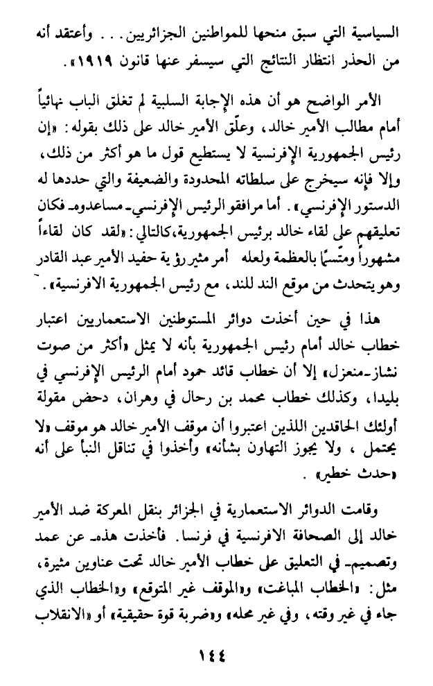 السياسية التي سبق منحها للمواطنين الجزائريين ... وأعتقد أنه من الحذر انتظار النتائج التي سيسفر عنها قانون 1919).