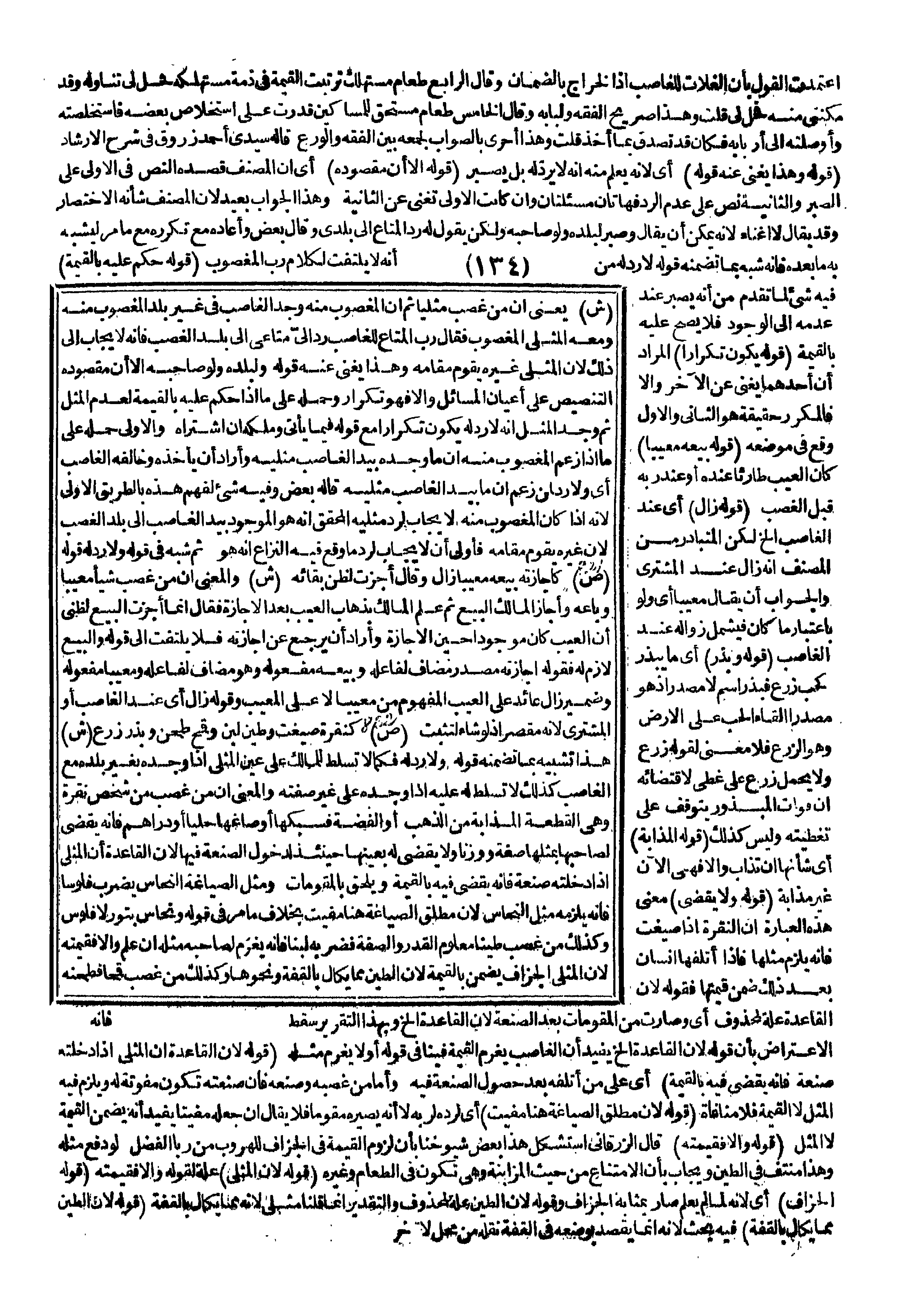 ـــــــــــــــــــــــــــــQاعْتَمَدْتُ الْقَوْلَ بِأَنَّ الْغَلَّاتِ لِلْغَاصِبِ إذْ الْخَرَاجُ بِالضَّمَانِ وَقَالَ الرَّابِعُ: طَعَامٌ مُسْتَهْلَكٌ تَرَتَّبَتْ الْقِيمَةُ فِي ذِمَّةِ مُسْتَهْلِكِهِ فَحَلَّ لِي تَنَاوُلُهُ وَقَدْ مَكَّنَنِي مِنْهُ فَحَلَّ لِي قُلْتُ وَهَذَا صَرِيحُ الْفِقْهِ وَلُبَابُهُ وَقَالَ الْخَامِسُ: طَعَامٌ مُسْتَحَقٌّ لِلْمَسَاكِينِ قَدَرْتُ عَلَى اسْتِخْلَاصِ بَعْضِهِ فَاسْتَخْلَصْتُهُ وَأَوْصَلْتُهُ إلَى أَرْبَابِهِ فَكَانَ قَدْ تَصَدَّقَ بِمَا أَخَذَ قُلْتُ وَهَذَا أَحْرَى بِالصَّوَابِ لِجَمْعِهِ بَيْنَ الْفِقْهِ وَالْوَرَعِ قَالَهُ سَيِّدِي أَحْمَدُ زَرُّوقٌ فِي شَرْحِ الْإِرْشَادِ