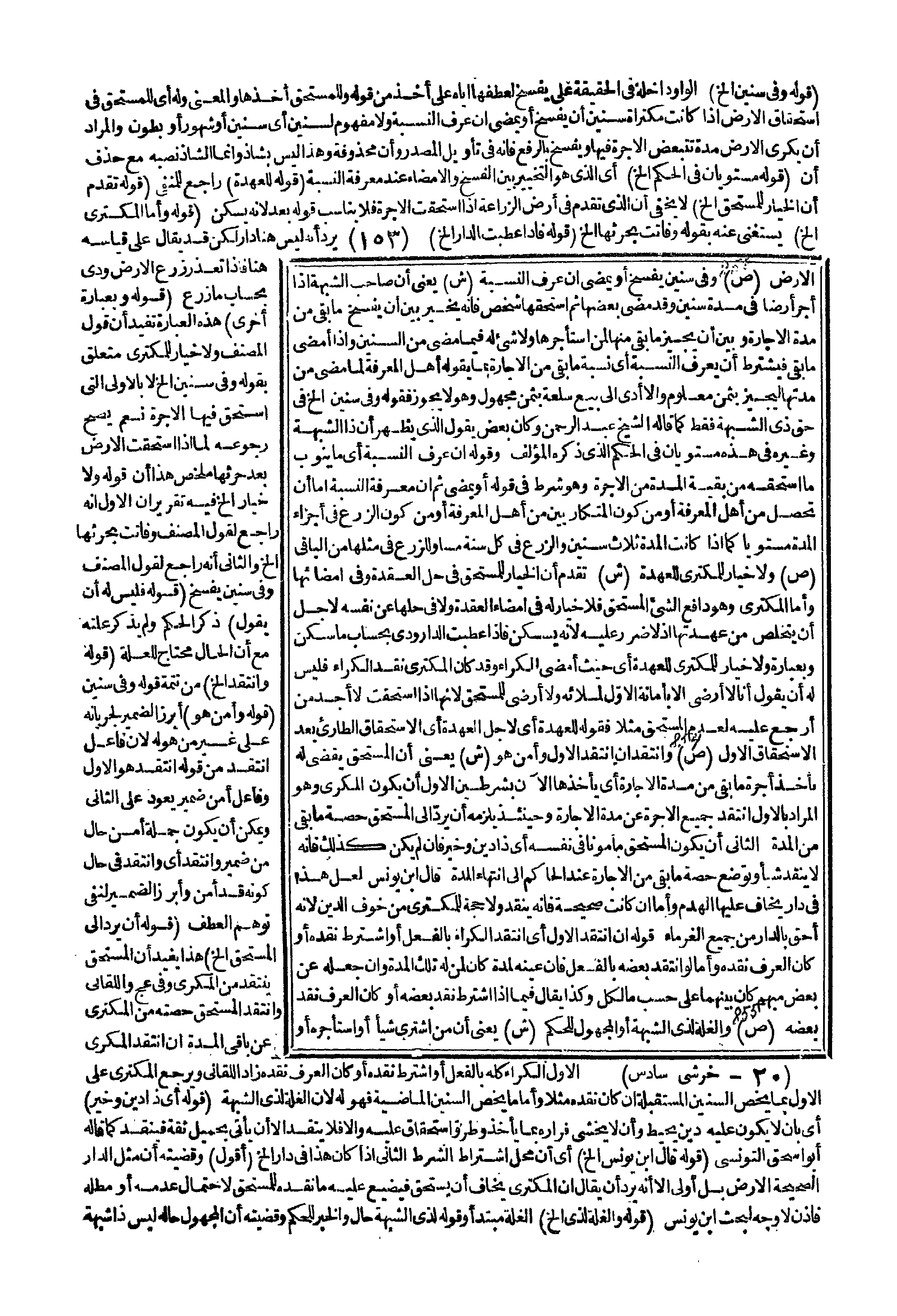 ـــــــــــــــــــــــــــــQ (قَوْلُهُ وَفِي سِنِينَ إلَخْ) الْوَاوُ دَاخِلَةٌ فِي الْحَقِيقَةِ عَلَى يَفْسَخُ لِعَطْفِهَا إيَّاهُ عَلَى " أَخْذُ " مِنْ قَوْلِهِ وَلِلْمُسْتَحِقِّ أَخْذُهَا وَالْمَعْنَى وَلَهُ أَيْ لِلْمُسْتَحِقِّ فِي اسْتِحْقَاقِ الْأَرْضِ إذَا كَانَتْ مُكْتَرَاةً سِنِينَ أَنْ يَفْسَخَ أَوْ يُمْضِيَ إنْ عَرَفَ النِّسْبَةَ وَلَا مَفْهُومَ لِسِنِينَ أَيْ سِنِينَ أَوْ شُهُورٍ أَوْ بُطُونٍ وَالْمُرَادُ أَنْ يُكْرِيَ الْأَرْضَ مُدَّةً تَتَبَعَّضُ الْأُجْرَةُ فِيهَا وَيَفْسَخُ بِالرَّفْعِ فَإِنَّهُ فِي تَأْوِيلِ الْمَصْدَرِ وَأَنْ مَحْذُوفَةٌ وَهَذَا لَيْسَ بِشَاذٍّ وَإِنَّمَا الشَّاذُّ نَصْبُهُ مَعَ حَذْفِ أَنْ (قَوْلُهُ مُسْتَوِيَانِ فِي الْحُكْمِ إلَخْ) أَيْ الَّذِي هُوَ التَّخْيِيرُ بَيْنَ الْفَسْخِ وَالْإِمْضَاءِ عِنْدَ مَعْرِفَةِ النِّسْبَةِ