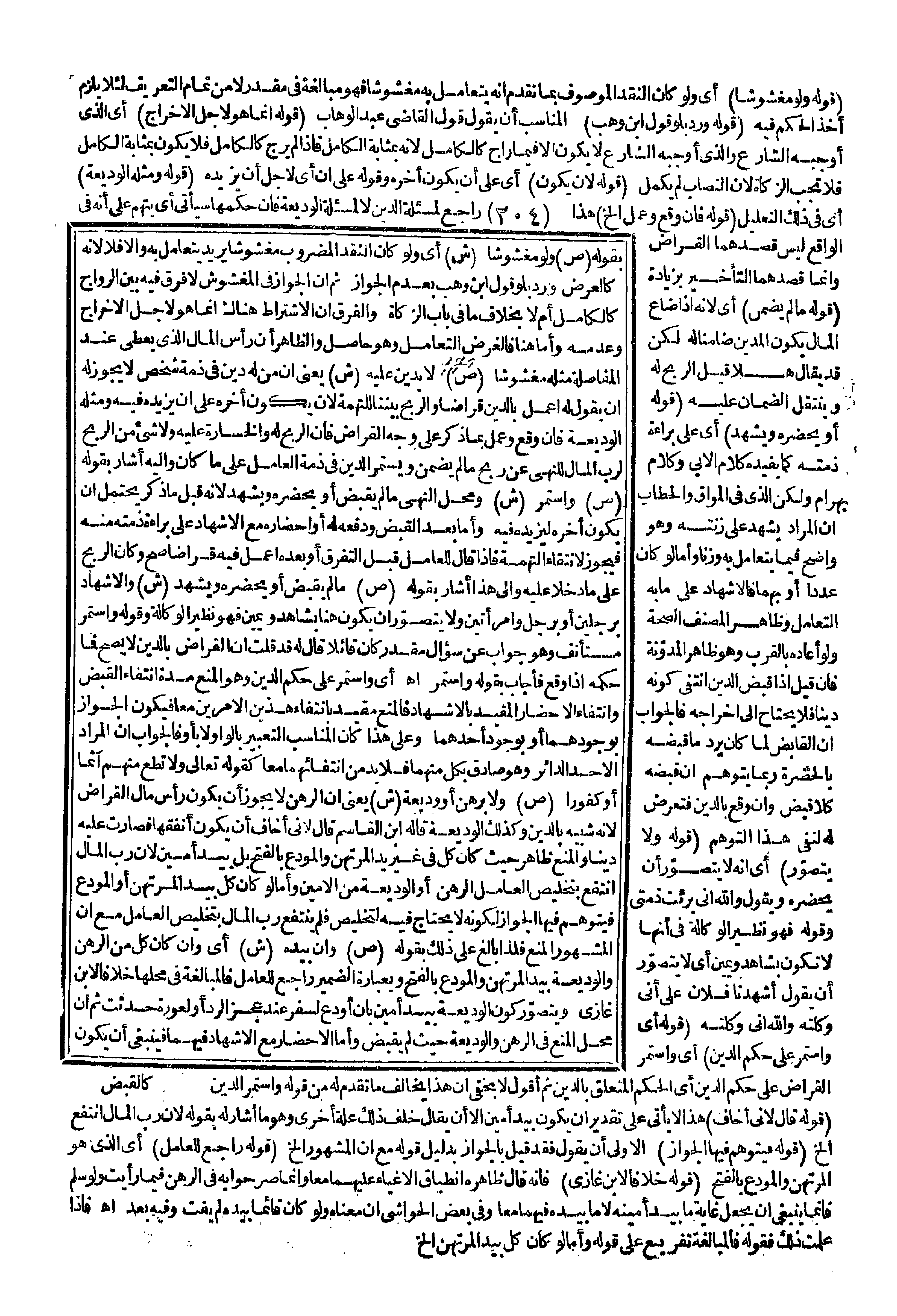 (ص) لَا بِدَيْنٍ عَلَيْهِ (ش) يَعْنِي أَنَّ مَنْ لَهُ دَيْنٌ فِي ذِمَّةِ شَخْصٍ لَا يَجُوزُ لَهُ أَنْ يَقُولَ لَهُ اعْمَلْ بِالدَّيْنِ قِرَاضًا وَالرِّبْحُ بَيْنَنَا لِلتُّهْمَةِ لَأَنْ يَكُونَ أَخَّرَهُ عَلَى أَنْ يَزِيدَهُ فِيهِ وَمِثْلُهُ الْوَدِيعَةُ فَإِنْ وَقَعَ وَعَمِلَ بِمَا ذُكِرَ عَلَى وَجْهِ الْقِرَاضِ فَإِنَّ الرِّبْحَ لَهُ وَالْخَسَارَةُ عَلَيْهِ وَلَا شَيْءَ مِنْ الرِّبْحِ لِرَبِّ الْمَالِ لِلنَّهْيِ عَنْ رِبْحٍ مَا لَمْ يُضْمَنْ وَيَسْتَمِرُّ الدَّيْنُ فِي ذِمَّةِ الْعَامِلِ عَلَى مَا كَانَ وَإِلَيْهِ أَشَارَ بِقَوْلِهِ (ص) وَاسْتَمَرَّ (ش) وَمَحَلُّ النَّهْيِ مَا لَمْ يَقْبِضْ أَوْ يُحْضِرْهُ وَيُشْهِدْ لِأَنَّهُ قَبْلَ مَا ذُكِرَ يَحْتَمِلُ أَنْ يَكُونَ أَخَّرَهُ لِيَزِيدَهُ فِيهِ، وَأَمَّا بَعْدَ الْقَبْضِ وَدَفْعِهِ لَهُ أَوْ إحْضَارِهِ مَعَ الْإِشْهَادِ عَلَى بَرَاءَةِ ذِمَّتِهِ مِنْهُ فَيَجُوزُ لِانْتِفَاءِ التُّهْمَةِ فَإِذَا قَالَ لِلْعَامِلِ قَبْلَ التَّفَرُّقِ أَوْ بَعْدَهُ اعْمَلْ فِيهِ قِرَاضًا صَحَّ وَكَانَ الرِّبْحُ عَلَى مَا دَخَلَا عَلَيْهِ وَإِلَى هَذَا أَشَارَ بِقَوْلِهِ (ص) مَا لَمْ يَقْبِضْ أَوْ يُحْضِرْهُ وَيُشْهِدْ (ش) وَالْإِشْهَادُ بِرَجُلَيْنِ أَوْ بِرَجُلٍ وَامْرَأَتَيْنِ وَلَا يُتَصَوَّرُ أَنْ يَكُونَ هُنَا بِشَاهِدٍ وَيَمِينٍ فَهُوَ نَظِيرُ الْوَكَالَةِ وَقَوْلُهُ وَاسْتَمَرَّ مُسْتَأْنَفٌ وَهُوَ جَوَابٌ عَنْ سُؤَالٍ مُقَدَّرٍ كَأَنَّ قَائِلًا قَالَ لَهُ قَدْ قُلْتَ إنَّ الْقِرَاضَ بِالدَّيْنِ لَا يَصِحُّ فَمَا حُكْمُهُ إذَا وَقَعَ فَأَجَابَ بِقَوْلِهِ وَاسْتَمَرَّ اهـ. أَيْ وَاسْتَمَرَّ عَلَى حُكْمِ الدَّيْنِ وَهُوَ الْمَنْعُ مُدَّةَ انْتِفَاءِ الْقَبْضِ وَانْتِفَاءِ الْإِحْضَارِ الْمُقَيَّدِ بِالْإِشْهَادِ فَالْمَنْعُ مُقَيَّدٌ بِانْتِفَاءِ هَذَيْنِ الْأَمْرَيْنِ مَعًا فَيَكُونُ الْجَوَازُ بِوُجُودِهِمَا أَوْ بِوُجُودِ أَحَدِهِمَا وَعَلَى هَذَا كَانَ الْمُنَاسِبُ التَّعْبِيرُ بِالْوَاوِ لَا بِأَوْ فَالْجَوَابُ أَنَّ الْمُرَادَ الْأَحَدُ الدَّائِرُ وَهُوَ صَادِقٌ بِكُلٍّ مِنْهُمَا فَلَا بُدَّ مِنْ انْتِفَائِهِمَا مَعًا كَقَوْلِهِ تَعَالَى {وَلا تُطِعْ مِنْهُمْ آثِمًا أَوْ كَفُورًا} [الإنسان: 24] .