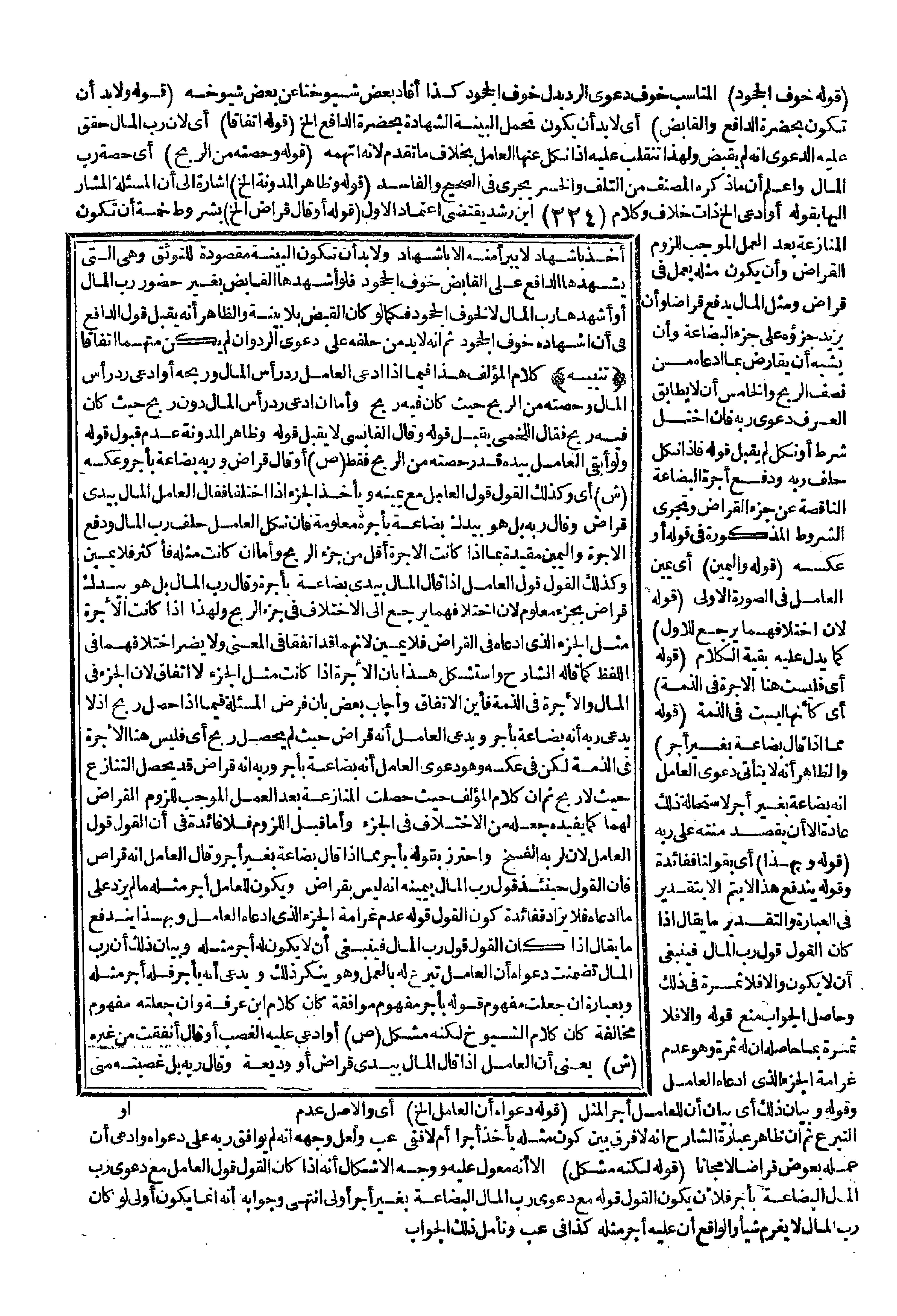 ـــــــــــــــــــــــــــــQقَوْلُهُ خَوْفَ الْجُحُودِ) الْمُنَاسِبُ خَوْفَ دَعْوَى الرَّدِّ بَدَلَ خَوْفِ الْجُحُودِ كَذَا أَفَادَ بَعْضُ شُيُوخِنَا عَنْ بَعْضِ شُيُوخِهِ (قَوْلُهُ وَلَا بُدَّ أَنْ تَكُونَ بِحَضْرَةِ الدَّافِعِ وَالْقَابِضِ) أَيْ لَا بُدَّ أَنْ يَكُونَ تَحَمُّلُ الْبَيِّنَةِ الشَّهَادَةَ بِحَضْرَةِ الدَّافِعِ إلَخْ (قَوْلُهُ اتِّفَاقًا) أَيْ لِأَنَّ رَبَّ الْمَالِ حَقَّقَ عَلَيْهِ الدَّعْوَى أَنَّهُ لَمْ يَقْبِضْ وَلِهَذَا تَنْقَلِبُ عَلَيْهِ إذَا نَكَلَ عَنْهَا الْعَامِلُ بِخِلَافِ مَا تَقَدَّمَ؛ لِأَنَّهُ اتَّهَمَهُ (قَوْلُهُ وَحِصَّتِهِ مِنْ الرِّبْحِ) أَيْ حِصَّةِ رَبِّ الْمَالِ وَاعْلَمْ أَنَّ مَا ذَكَرَهُ الْمُصَنِّفُ مِنْ التَّلَفِ وَالْخَسْرِ يَجْرِي فِي الصَّحِيحِ وَالْفَاسِدِ (قَوْلُهُ وَظَاهِرُ الْمُدَوَّنَةِ إلَخْ) إشَارَةٌ إلَى أَنَّ الْمَسْأَلَةَ الْمُشَارَ إلَيْهَا بِقَوْلِهِ أَوْ ادَّعَى إلَخْ ذَاتُ خِلَافٍ وَكَلَامُ ابْنِ رُشْدٍ يَقْتَضِي اعْتِمَادَ الْأَوَّلِ.