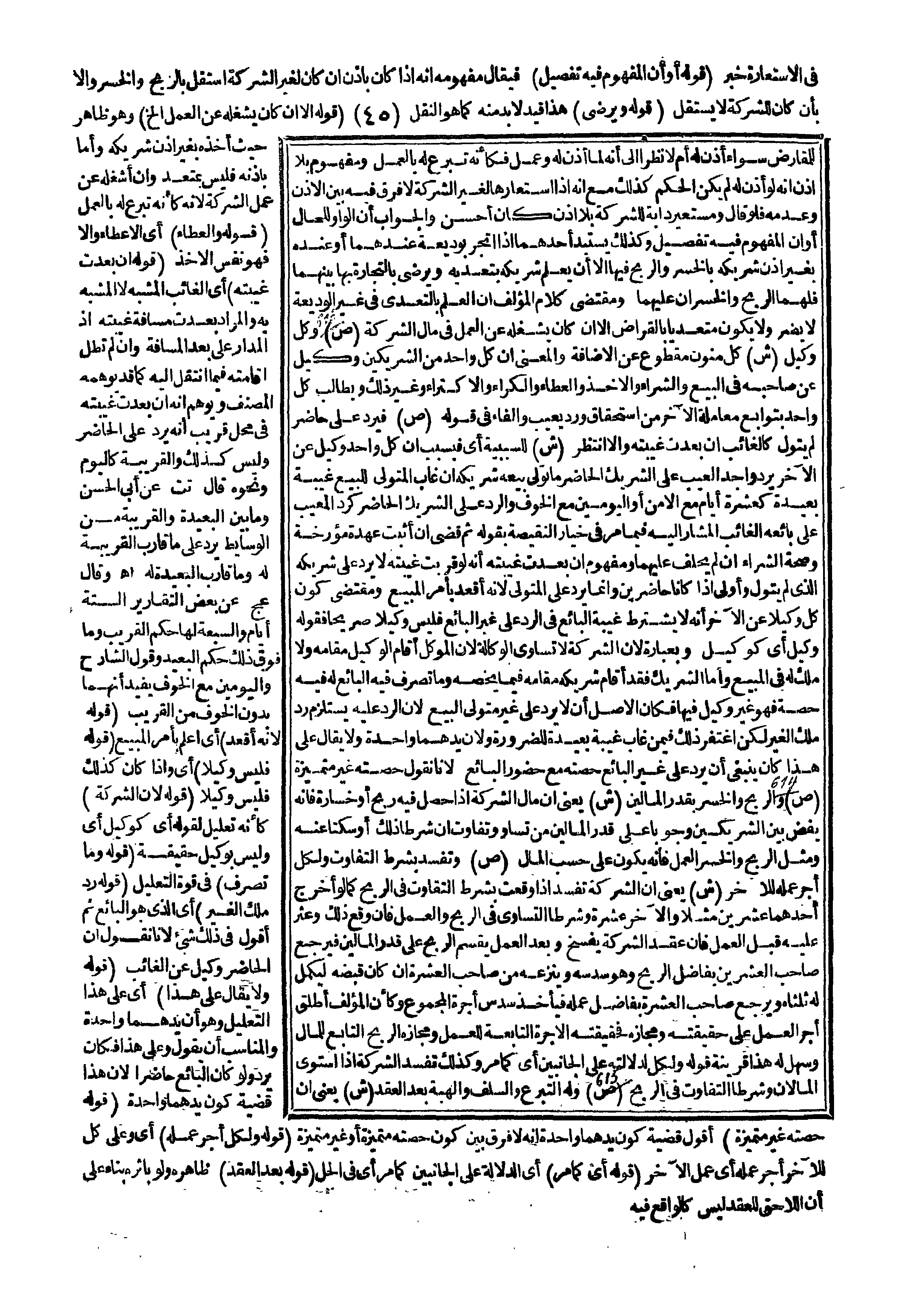 ـــــــــــــــــــــــــــــQفِي الِاسْتِعَارَةِ خَبَرٌ (قَوْلُهُ أَوْ أَنَّ الْمَفْهُومَ فِيهِ تَفْصِيلٌ) فَيُقَالُ مَفْهُومُهُ أَنَّهُ إذَا كَانَ بِإِذْنٍ إنْ كَانَ لِغَيْرِ الشَّرِكَةِ اسْتَقَلَّ بِالرِّبْحِ وَالْخُسْرِ وَإِلَّا بِأَنْ كَانَ لِلشَّرِكَةِ لَا يَسْتَقِلُّ (قَوْلُهُ وَيَرْضَى) هَذَا قَيْدٌ لَا بُدَّ مِنْهُ كَمَا هُوَ النَّقْلُ (قَوْلُهُ إلَّا إنْ كَانَ يَشْغَلُهُ عَنْ الْعَمَلِ إلَخْ) وَهُوَ ظَاهِرٌ حَيْثُ أَخَذَهُ بِغَيْرِ إذْنِ شَرِيكِهِ وَأَمَّا بِإِذْنِهِ فَلَيْسَ بِمُتَعَدٍّ وَإِنْ أَشْغَلَهُ عَنْ عَمَلِ الشَّرِكَةِ لِأَنَّهُ كَأَنَّهُ تَبَرَّعَ لَهُ بِالْعَمَلِ.