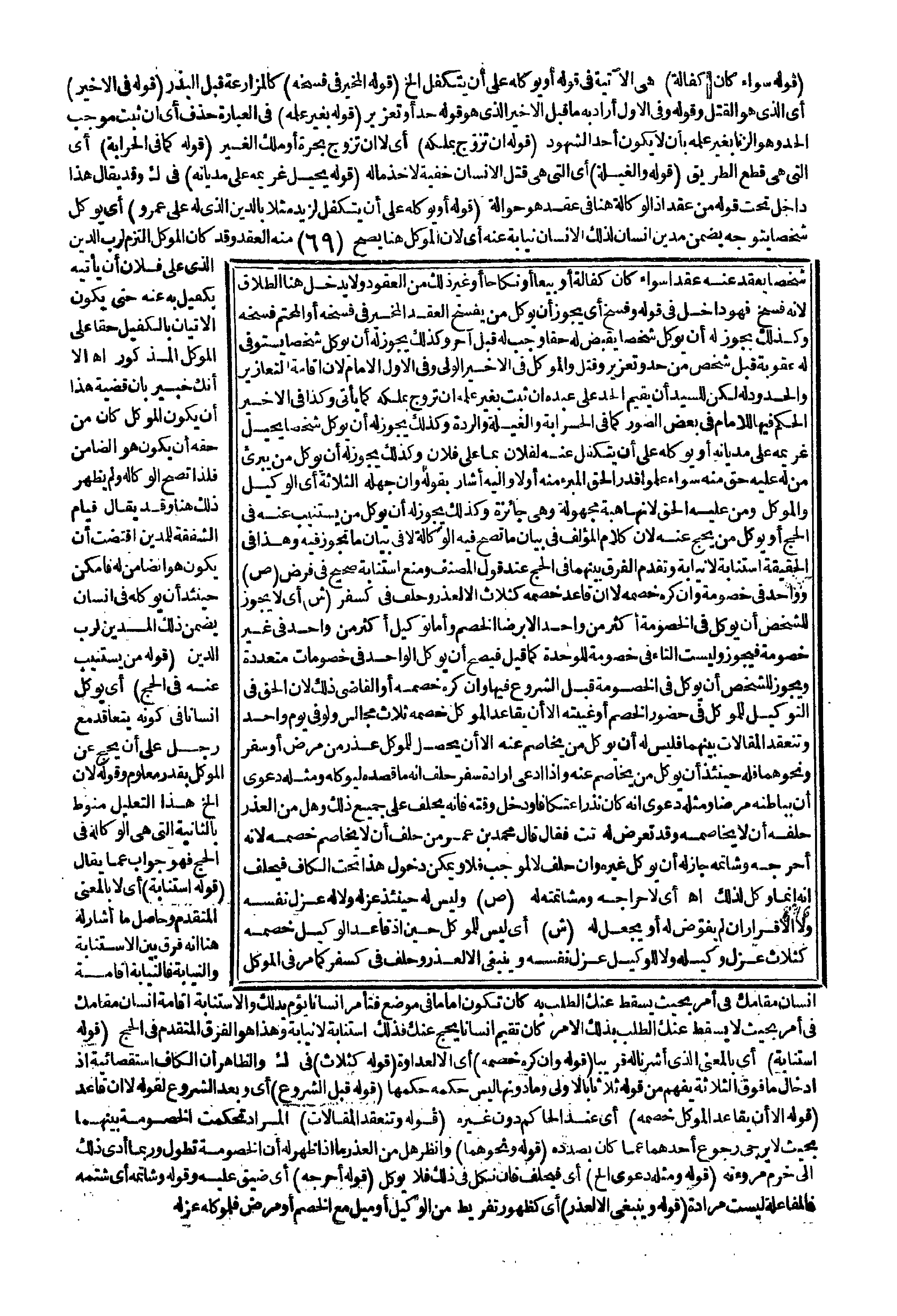 ـــــــــــــــــــــــــــــQقَوْلُهُ سَوَاءٌ كَانَ كَفَالَةً) هِيَ الْآتِيَةُ فِي قَوْلِهِ أَوْ يُوَكِّلُهُ عَلَى أَنْ يَتَكَفَّلَ إلَخْ (قَوْلُهُ الْمُخَيِّرُ فِي فَسْخِهِ) كَالْمُزَارَعَةِ قَبْلَ الْبَذْرِ (قَوْلُهُ فِي الْأَخِيرِ) أَيْ الَّذِي هُوَ الْقَتْلُ وَقَوْلُهُ وَفِي الْأَوَّلِ أَرَادَ بِهِ مَا قَبْلَ الْأَخِيرِ الَّذِي هُوَ قَوْلُهُ حَدٍّ أَوْ تَعْزِيرٍ (قَوْلُهُ بِغَيْرِ عِلْمِهِ) فِي الْعِبَارَةِ حَذْفٌ أَيْ إنْ ثَبَتَ مُوجِبُ الْحَدِّ وَهُوَ الزِّنَا بِغَيْرِ عِلْمِهِ بِأَنْ لَا يَكُونَ أَحَدُ الشُّهُودِ (قَوْلُهُ إنْ تَزَوَّجَ بِمِلْكِهِ) أَيْ لَا إنْ تَزَوَّجَ بِحُرَّةٍ أَوْ مِلْكِ الْغَيْرِ (قَوْلُهُ كَمَا فِي الْحِرَابَةِ) أَيْ الَّتِي هِيَ قَطْعُ الطَّرِيقِ (قَوْلُهُ وَالْغِيلَةِ) أَيْ الَّتِي هِيَ قَتْلُ الْإِنْسَانِ خُفْيَةً لِأَخْذِ مَالِهِ (قَوْلُهُ يُحِيلُ غَرِيمَهُ عَلَى مِدْيَانِهِ) فِي ك وَقَدْ يُقَالُ هَذَا دَاخِلٌ تَحْتَ قَوْلِهِ مِنْ عَقْدٍ إذْ الْوَكَالَةُ هُنَا فِي عَقْدٍ هُوَ حَوَالَةٌ.