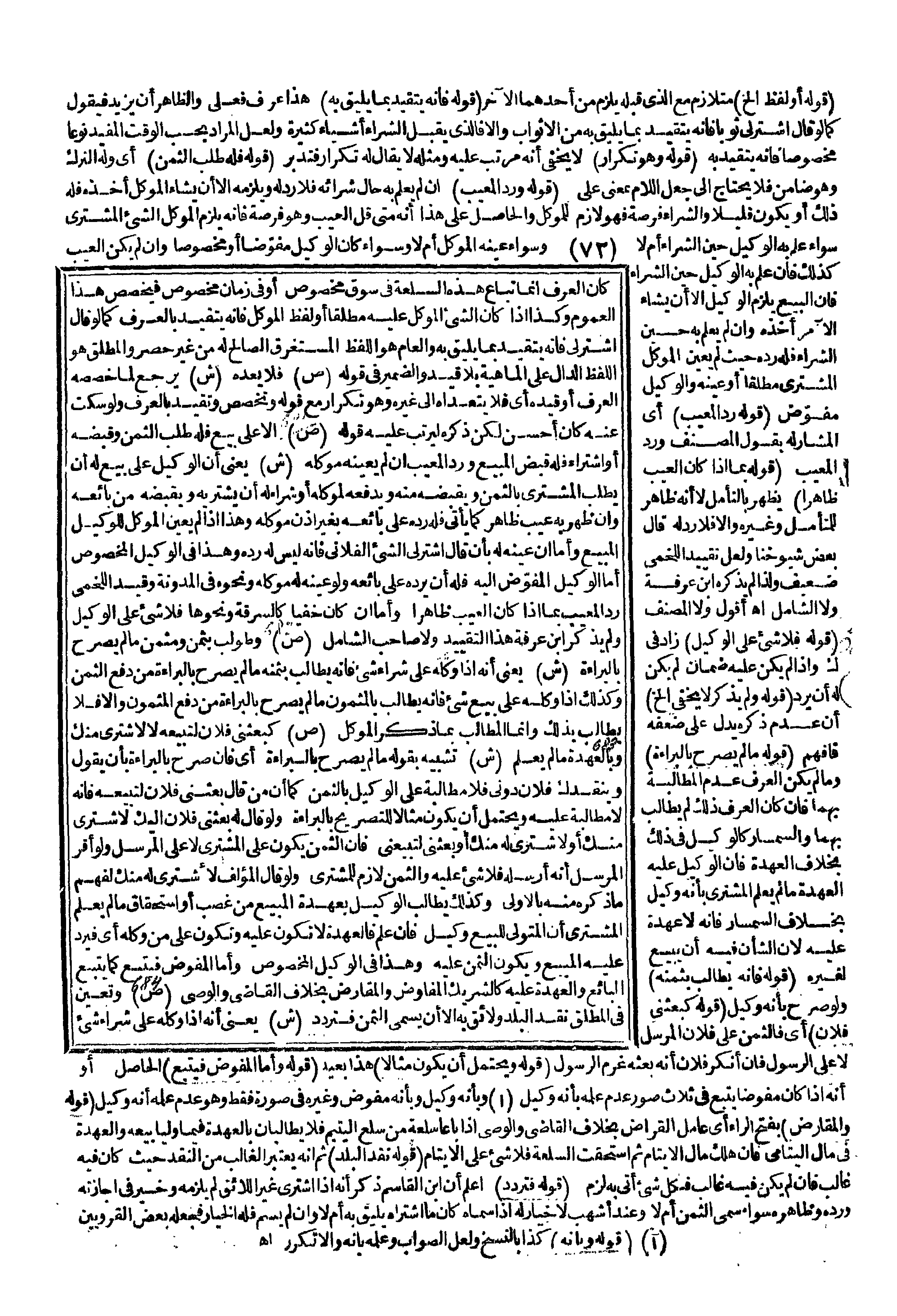 (ص) إلَّا عَلَى بَيْعٍ فَلَهُ طَلَبُ الثَّمَنِ وَقَبْضُهُ أَوْ اشْتِرَاءٌ فَلَهُ قَبْضُ الْمَبِيعِ وَرَدُّ الْمَعِيبِ إنْ لَمْ يُعَيِّنْهُ مُوَكِّلُهُ (ش) يَعْنِي أَنَّ الْوَكِيلَ عَلَى بَيْعٍ لَهُ أَنْ يَطْلُبَ الْمُشْتَرِيَ بِالثَّمَنِ وَيَقْبِضُهُ مِنْهُ وَيَدْفَعُهُ لِمُوَكِّلِهِ أَوْ شِرَاءٍ لَهُ أَنْ يَشْتَرِيَهُ وَيَقْبِضَهُ مِنْ بَائِعِهِ وَإِنْ ظَهَرَ بِهِ عَيْبٌ ظَاهِرٌ كَمَا يَأْتِي فَلَهُ رَدُّهُ عَلَى بَائِعِهِ بِغَيْرِ إذْنِ مُوَكِّلِهِ وَهَذَا إذَا لَمْ يُعَيِّنْ الْمُوَكِّلُ لِلْوَكِيلِ الْمَبِيعَ وَأَمَّا إنْ عَيَّنَهُ لَهُ بِأَنْ قَالَ اشْتَرِ لِي الشَّيْءَ الْفُلَانِيَّ فَإِنَّهُ لَيْسَ لَهُ رَدُّهُ وَهَذِهِ فِي الْوَكِيلِ الْمَخْصُوصِ أَمَّا الْوَكِيلُ الْمُفَوَّضِ إلَيْهِ فَلَهُ أَنْ يَرُدَّهُ عَلَى بَائِعِهِ وَلَوْ عَيَّنَهُ لَهُ مُوَكِّلُهُ وَنَحْوُهُ فِي الْمُدَوَّنَةِ وَقَيَّدَ اللَّخْمِيُّ رَدَّ الْمَعِيبِ بِمَا إذَا كَانَ الْعَيْبُ ظَاهِرًا وَأَمَّا إنْ كَانَ خَفِيًّا كَالسَّرِقَةِ وَنَحْوِهَا فَلَا شَيْءَ عَلَى الْوَكِيلِ وَلَمْ يَذْكُرْ ابْنُ عَرَفَةِ هَذَا التَّقْيِيدَ وَلَا صَاحِبُ الشَّامِلِ (ص) وَطُولِبَ بِثَمَنٍ وَمُثَمَّنٍ مَا لَمْ يُصَرِّحْ بِالْبَرَاءَةِ (ش) يَعْنِي أَنَّهُ إذَا وَكَّلَهُ عَلَى شِرَاءِ شَيْءٍ فَإِنَّهُ يُطَالِبُ بِثَمَنِهِ مَا لَمْ يُصَرِّحْ بِالْبَرَاءَةِ مِنْ دَفْعِ الثَّمَنِ وَكَذَلِكَ إذَا وَكَّلَهُ عَلَى بَيْعِ شَيْءٍ فَإِنَّهُ يُطَالِبُ بِالْمَثْمُونِ مَا لَمْ يُصَرِّحْ بِالْبَرَاءَةِ مِنْ دَفْعِ الْمَثْمُونِ وَإِلَّا فَلَا يُطَالِبُ بِذَلِكَ وَإِنَّمَا الْمُطَالَبُ بِمَا ذُكِرَ الْمُوَكِّلُ (ص) كَبَعَثَنِي فُلَانٌ لِتَبِيعَهُ لَا لِأَشْتَرِيَ مِنْك وَبِالْعُهْدَةِ مَا لَمْ يَعْلَمْ (ش) تَشْبِيهٌ بِقَوْلِهِ مَا لَمْ يُصَرِّحْ بِالْبَرَاءَةِ أَيْ فَإِنْ صَرَّحَ بِالْبَرَاءَةِ بِأَنْ يَقُولُ وَيَنْقُدُك فُلَانٌ دُونِي فَلَا مُطَالَبَةَ عَلَى الْوَكِيلِ بِالثَّمَنِ كَمَا أَنَّ مَنْ قَالَ بَعَثَنِي فُلَانٌ لِتَبِيعَهُ فَإِنَّهُ لَا مُطَالَبَةَ عَلَيْهِ وَيُحْتَمَلُ أَنْ يَكُونَ مِثَالًا لِلتَّصْرِيحِ بِالْبَرَاءَةِ وَلَوْ قَالَ لَهُ بَعَثَنِي فُلَانٌ إلَيْك لِأَشْتَرِيَ مِنْك أَوْ لِأَشْتَرِيَ لَهُ مِنْك أَوْ بَعَثَنِي لِتَبِيعَنِي فَإِنَّ الثَّمَنَ يَكُونُ عَلَى الْمُشْتَرِي لَا عَلَى الْمُرْسَلِ وَلَوْ أَقَرَّ الْمُرْسَلُ أَنَّهُ أَرْسَلَهُ فَلَا شَيْءَ عَلَيْهِ وَالثَّمَنُ لَازِمٌ لِلْمُشْتَرِي وَلَوْ قَالَ الْمُؤَلِّفُ لِأَشْتَرِيَ لَهُ مِنْك لَفُهِمَ مَا ذَكَرَهُ مِنْهُ بِالْأُولَى وَكَذَلِكَ يُطَالِبُ الْوَكِيلُ بِعُهْدَةِ الْمَبِيعِ مِنْ غَصْبٍ أَوْ اسْتِحْقَاقٍ مَا لَمْ يَعْلَمْ الْمُشْتَرِي أَنَّ الْمُتَوَلِّيَ لِلْبَيْعِ وَكِيلٌ فَإِنْ عَلِمَ فَالْعُهْدَةُ لَا تَكُونُ عَلَيْهِ وَتَكُونُ عَلَى مَنْ وَكَّلَهُ أَيْ فَيَرُدُّ عَلَيْهِ الْمَبِيعَ وَيَكُونُ الثَّمَنُ عَلَيْهِ وَهَذَا فِي الْوَكِيلِ الْمَخْصُوصِ وَأَمَّا الْمُفَوَّضُ فَيَتْبَعُ كَمَا يَتْبَعُ الْبَائِعُ وَالْعُهْدَةُ عَلَيْهِ كَالشَّرِيكِ الْمُفَاوِضِ وَالْمُقَارِضِ بِخِلَافِ الْقَاضِي وَالْوَصِيِّ