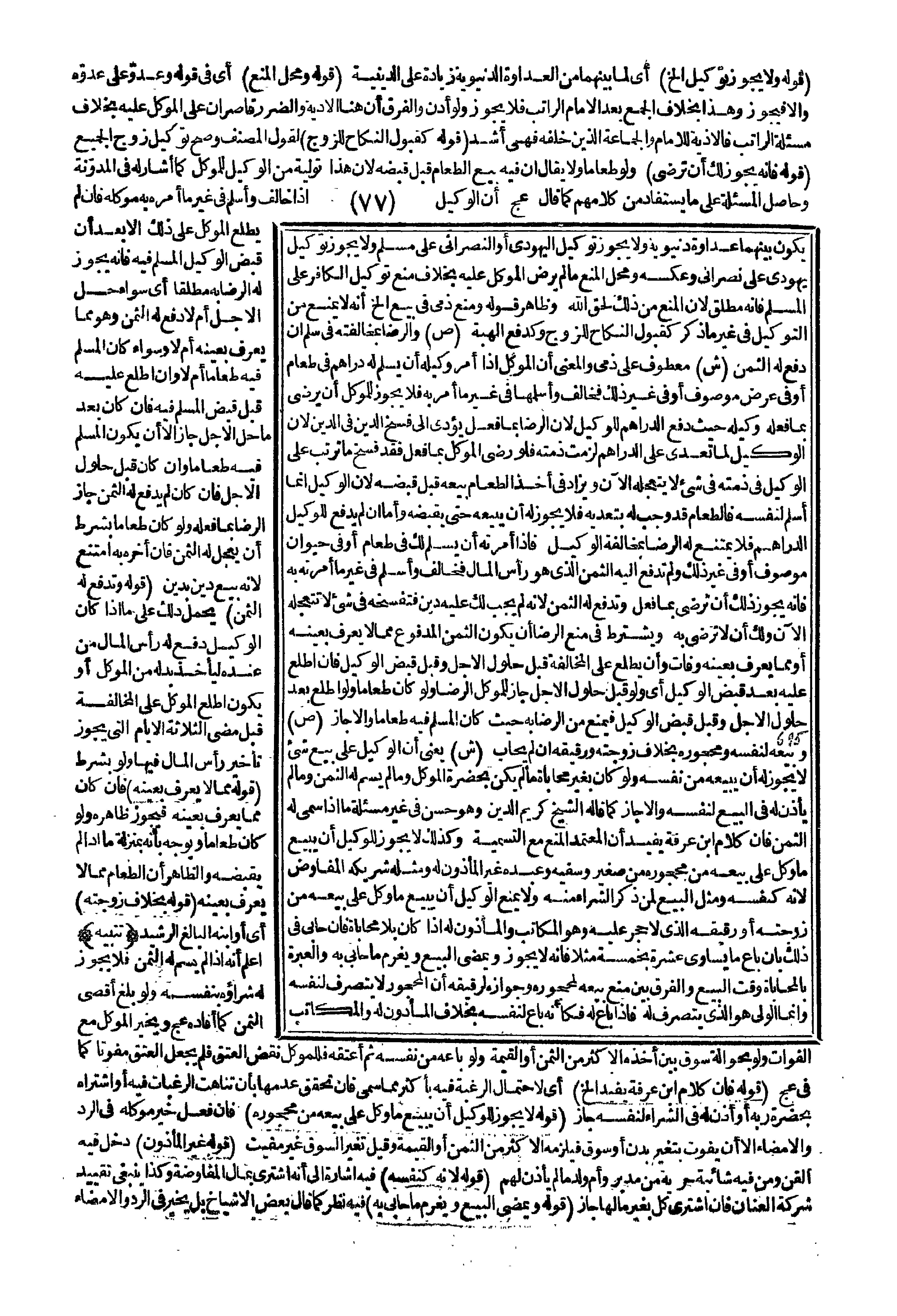 (ص) وَالرِّضَا بِمُخَالَفَتِهِ فِي سَلَمٍ إنْ دَفَعَ لَهُ الثَّمَنَ (ش) مَعْطُوفٌ عَلَى ذِمِّيٍّ وَالْمَعْنَى أَنَّ الْمُوَكِّلَ إذَا أَمَرَ وَكِيلَهُ أَنْ يُسَلِّمَ لَهُ دَرَاهِمَ فِي طَعَامٍ أَوْ فِي عَرْضٍ مَوْصُوفٍ أَوْ فِي غَيْرِ ذَلِكَ فَخَالَفَ وَأَسْلَمَهَا فِي غَيْرِ مَا أُمِرَ بِهِ فَلَا يَجُوزُ لِلْمُوَكِّلِ أَنْ يَرْضَى بِمَا فَعَلَهُ وَكِيلُهُ حَيْثُ دَفَعَ الدَّرَاهِمَ لِلْوَكِيلِ لِأَنَّ الرِّضَا بِمَا فَعَلَ يُؤَدِّي إلَى فَسْخِ الدَّيْنِ فِي الدَّيْنِ لِأَنَّ الْوَكِيلَ لَمَّا تَعَدَّى عَلَى الدَّرَاهِمِ لَزِمَتْ ذِمَّتُهُ فَلَوْ رَضِيَ الْمُوَكِّلُ بِمَا فَعَلَ فَقَدْ فَسَخَ مَا تَرَتَّبَ عَلَى الْوَكِيلِ فِي ذِمَّتِهِ فِي شَيْءٍ لَا يَتَعَجَّلُهُ الْآنَ وَيُزَادُ فِي أَخْذِ الطَّعَامِ بَيْعُهُ قَبْلَ قَبْضِهِ لِأَنَّ الْوَكِيلَ إنَّمَا أَسْلَمَ لِنَفْسِهِ فَالطَّعَامُ قَدْ وَجَبَ لَهُ بِتَعَدِّيهِ فَلَا يَجُوزُ لَهُ أَنْ يَبِيعَهُ حَتَّى يَقْبِضَهُ وَأَمَّا إنْ لَمْ يَدْفَعْ لِلْوَكِيلِ الدَّرَاهِمَ فَلَا يَمْتَنِعُ لَهُ الرِّضَا بِمُخَالَفَةِ الْوَكِيلِ فَإِذَا أَمَرْته أَنْ يُسَلِّمَ لَك فِي طَعَامٍ أَوْ فِي حَيَوَانٍ مَوْصُوفٍ أَوْ فِي غَيْرِ ذَلِكَ وَلَمْ تَدْفَعْ إلَيْهِ الثَّمَنَ الَّذِي هُوَ رَأْسُ الْمَالِ فَخَالَفَ وَأَسْلَمَ فِي غَيْرٍ مَا أَمَرْته بِهِ فَإِنَّهُ يَجُوزُ ذَلِكَ أَنْ تَرْضَى بِمَا فَعَلَ وَتَدْفَعَ لَهُ الثَّمَنَ لِأَنَّهُ لَمْ يَجِبْ لَك عَلَيْهِ دَيْنٌ فَتَفْسَخُهُ فِي شَيْءٍ لَا تَتَعَجَّلُهُ الْآنَ وَلَك أَنْ لَا تَرْضَى بِهِ وَيُشْتَرَطُ فِي مَنْعِ الرِّضَا أَنْ يَكُونَ الثَّمَنُ الْمَدْفُوعُ مِمَّا لَا يُعْرَفُ بِعَيْنِهِ أَوْ مِمَّا يُعْرَفُ بِعَيْنِهِ وَفَاتَ وَأَنْ يَطَّلِعَ عَلَى الْمُخَالَفَةِ قَبْلَ حُلُولِ الْأَجَلِ وَقَبْلَ قَبْضِ الْوَكِيلِ فَإِنْ اطَّلَعَ عَلَيْهِ بَعْدَ قَبْضِ الْوَكِيلِ أَيْ وَلَوْ قَبْلَ حُلُولِ الْأَجَلِ جَازَ لِلْمُوَكِّلِ الرِّضَا وَلَوْ كَانَ طَعَامًا وَلَوْ اطَّلَعَ بَعْدَ حُلُولِ الْأَجَلِ وَقَبْلَ قَبْضِ الْوَكِيلِ فَيُمْنَعُ مِنْ الرِّضَا بِهِ حَيْثُ كَانَ الْمُسْلَمُ فِيهِ طَعَامًا وَإِلَّا جَازَ