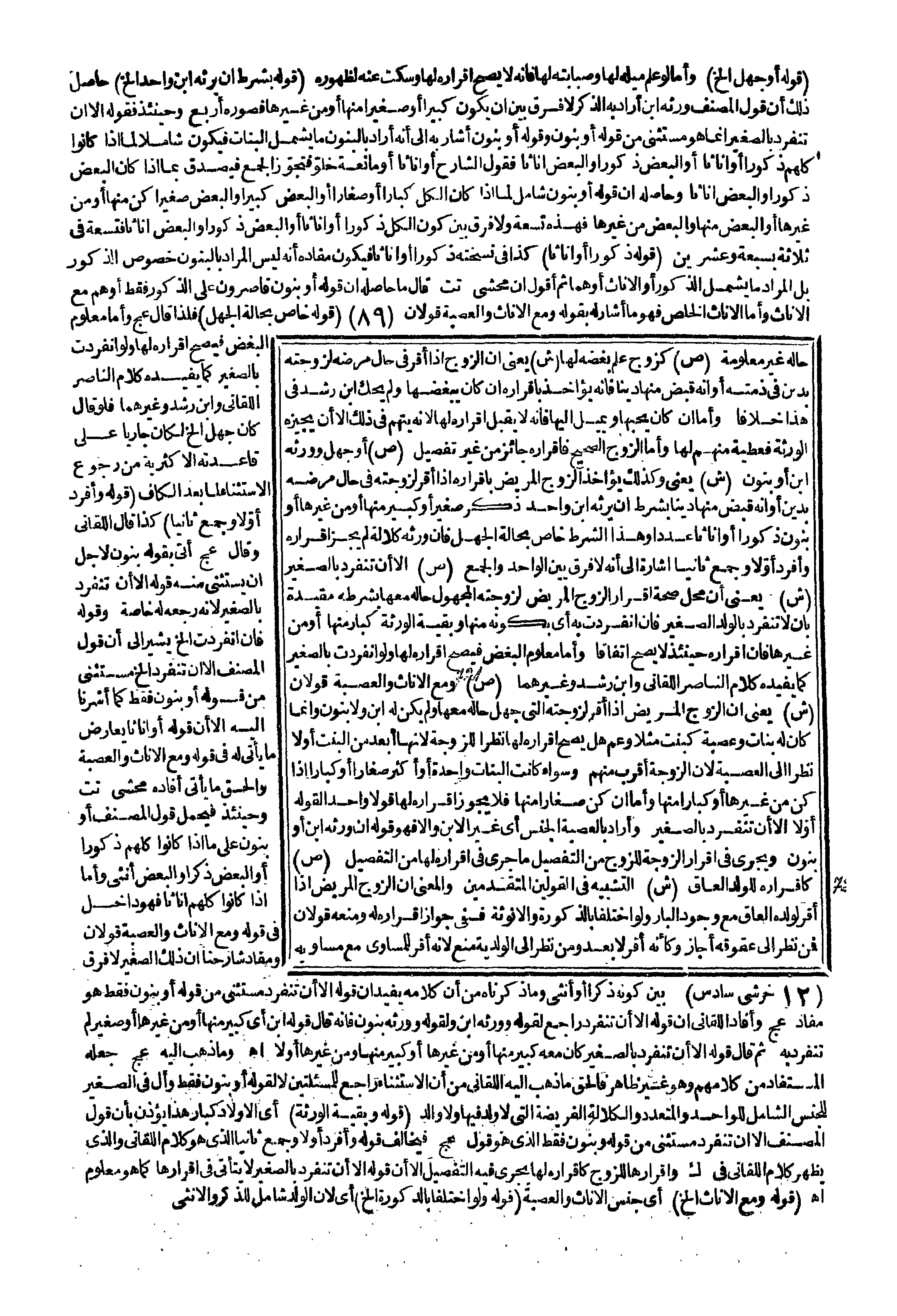 فَالْحَقُّ مَا ذَهَبَ إلَيْهِ اللَّقَانِيِّ مِنْ أَنَّ الِاسْتِثْنَاءَ رَاجِعٌ لِلْمَسْأَلَتَيْنِ لَا لِقَوْلِهِ أَوْ بَنُونَ فَقَطْ وَأَلْ فِي الصَّغِيرِ لِلْجِنْسِ الشَّامِلِ لِلْوَاحِدِ وَالْمُتَعَدِّدِ وَالْكَلَالَةُ الْفَرِيضَةُ الَّتِي لَا وَلَدَ فِيهَا وَلَا وَالِدَ (قَوْلُهُ وَبَقِيَّةُ الْوَرَثَةُ) أَيْ الْأَوْلَادُ كِبَارٌ هَذَا يُؤْذِنُ بِأَنَّ قَوْلَ الْمُصَنِّفِ إلَّا أَنْ تَنْفَرِدَ مُسْتَثْنًى مِنْ قَوْلِهِ وَبَنُونَ فَقَطْ الَّذِي هُوَ قَوْلُ عج فَيُخَالِفُ قَوْلَهُ وَأَفْرَدَ أَوَّلًا وَجَمَعَ ثَانِيًا الَّذِي هُوَ كَلَامُ اللَّقَانِيِّ وَاَلَّذِي يَظْهَرُ كَلَامُ اللَّقَانِيِّ فِي ك وَإِقْرَارُهَا لِلزَّوْجِ كَإِقْرَارِهِ لَهَا يَجْرِي فِيهِ التَّفْصِيلُ إلَّا أَنَّ قَوْلَهُ إلَّا أَنْ تَنْفَرِدَ بِالصَّغِيرِ لَا يَتَأَتَّى فِي إقْرَارِهَا كَمَا هُوَ مَعْلُومٌ اهـ. (قَوْلُهُ وَمَعَ الْإِنَاثِ إلَخْ) أَيْ جِنْسِ الْإِنَاثِ وَالْعَصَبَةِ (قَوْلُهُ وَلَوْ اخْتَلَفَا بِالذُّكُورَةِ إلَخْ) أَيْ لِأَنَّ الْوَلَدَ شَامِلٌ لِلذَّكَرِ وَالْأُنْثَى