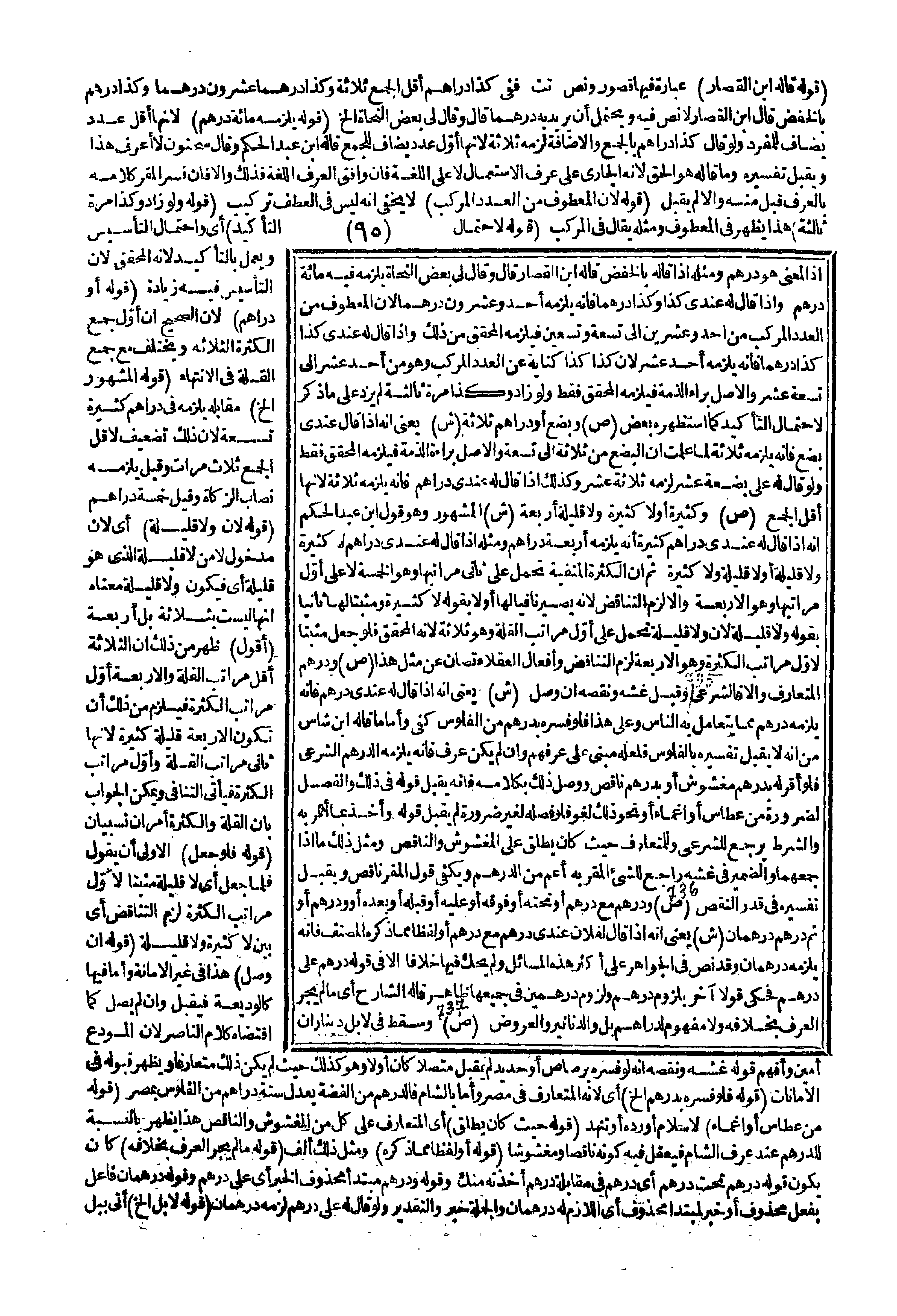 ـــــــــــــــــــــــــــــQقَوْلُهُ قَالَهُ ابْنُ الْقَصَّارِ) عِبَارَةٌ فِيهَا قُصُورٌ وَنَصُّ تت فَفِي كَذَا دَرَاهِمُ أَقَلُّ الْجَمْعِ ثَلَاثَةٌ وَكَذَا دِرْهَمًا عِشْرُونَ دِرْهَمًا وَكَذَا دِرْهَمٌ بِالْخَفْضِ قَالَ ابْنُ الْقَصَّارِ لَا نَصَّ فِيهِ وَيَحْتَمِلُ أَنْ يُرِيدَ بِهِ دِرْهَمًا قَالَ وَقَالَ لِي بَعْضُ النُّحَاةِ إلَخْ (قَوْلُهُ يَلْزَمُهُ مِائَةُ دِرْهَمٍ) لِأَنَّهَا أَقَلُّ عَدَدٍ يُضَافُ لِلْمُفْرَدِ وَلَوْ قَالَ كَذَا دَرَاهِمُ بِالْجَمْعِ وَالْإِضَافَةِ لَزِمَهُ ثَلَاثَةٌ لِأَنَّهَا أَوَّلُ عَدَدٍ يُضَافُ لِلْجَمْعِ قَالَهُ ابْنُ عَبْدِ الْحَكَمِ وَقَالَ سَحْنُونَ لَا أَعْرِفُ هَذَا وَيُقْبَلُ تَفْسِيرُهُ وَمَا قَالَهُ هُوَ الْحَقُّ لِأَنَّهُ الْجَارِي عَلَى عُرْفِ الِاسْتِعْمَالِ لَا عَلَى اللُّغَةِ فَإِنْ وَافَقَ الْعُرْفُ اللُّغَةَ فَذَلِكَ وَإِلَّا فَإِنْ فَسَّرَ الْمُقِرُّ كَلَامَهُ بِالْعُرْفِ قُبِلَ مِنْهُ وَإِلَّا لَمْ يُقْبَلْ (قَوْلُهُ لِأَنَّ الْمَعْطُوفَ مِنْ الْعَدَدِ الْمُرَكَّبِ) لَا يَخْفَى أَنَّهُ لَيْسَ فِي الْعَطْفِ تَرْكِيبٌ (قَوْلُهُ وَلَوْ زَادَ وَكَذَا مَرَّةٌ ثَالِثَةٌ) هَذَا يَظْهَرُ فِي الْمَعْطُوفِ وَمِثْلُهُ يُقَالُ فِي الْمُرَكَّبِ.