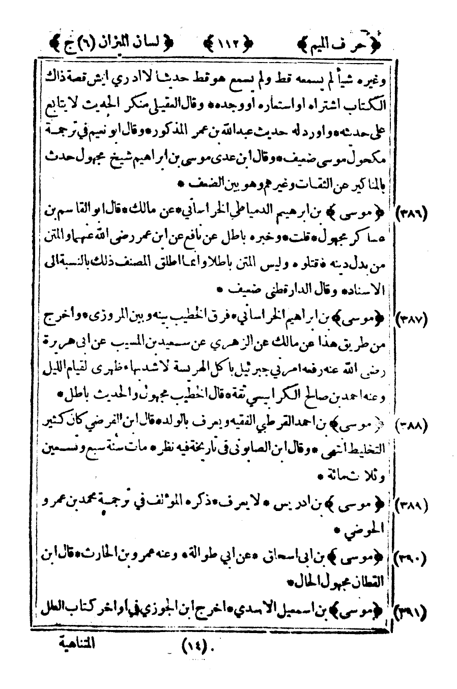 [389] "موسى" بن إدريس لا يعرف ذكره المؤلف في ترجمة محمد بن عمرو الحوضى.
