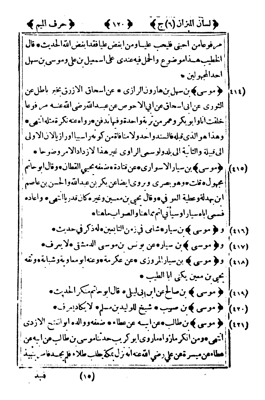 [418] "وموسى" بن سيار المروزي عن عكرمة وعنه أبو معاوية وشبابة وثقه يحيى بن معين يكنى أبا الطيب.