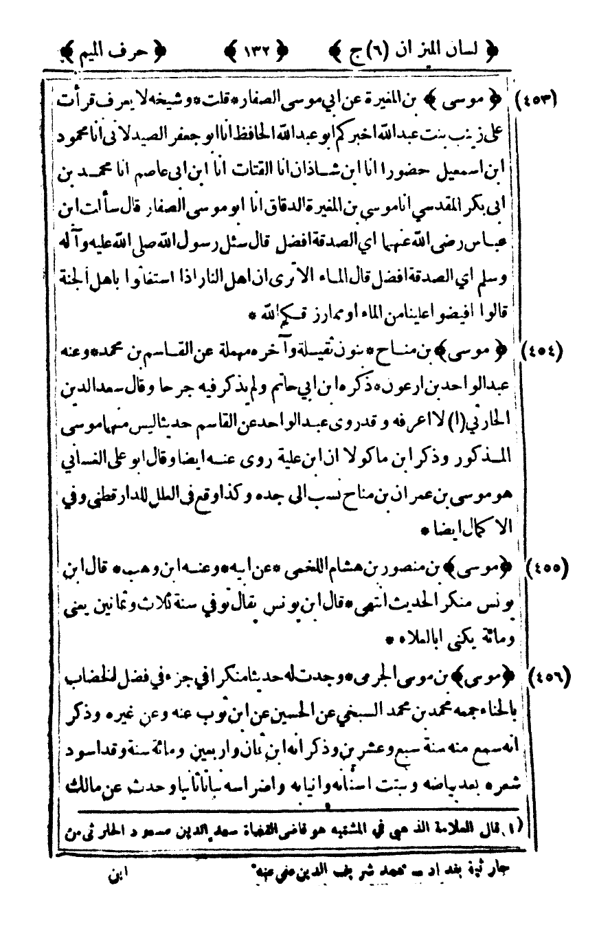 1 قال العلامة الذهبي في المشتبه هو قاضي القضاة سعد الدين مسعود الحارثي من حارثية بغداد – محمد شريف الدين عنه.