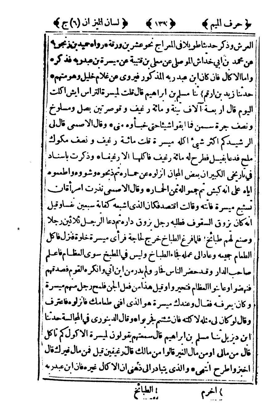 العرش وذكر حديثا طويلا في المعراج نحو عشرين ورقة رواه حميد بن زنجويه عن محمد بن أبي خداش الموصلي عن معلى بن قتيبة عن ميسرة بن عبد ربه فذكره واما الاكال فان ك أن ابن عبد ربه المذكور فيروى عن غلام خليل وهو متهم حدثنا زيد بن أرقم1 ثنا مسلم بن إبراهيم قال قلت لميسرة التراس أيش اكلت اليوم قال أربعة آلاف تينة ومائة رغيف وقوصرتين بصل ومسلوخ ونصف جرة سمن فما ابقوا شيئا حتى خبأوه منى وقال الأصمعي قال لي الرشيد كم أكثر شيء أكله ميسرة قلت مائة رغيف ونصف مكوك ملح فدعا بفيل فطرح له مائة رغيف فاكلها الا رغيفا وذكرت بإسناد في تاريخى الكبير ان بعض المجان انزلوه عن حماره ثم ذبحوه وشووه واطعموه إياه على أنه كبش ثم جمعوا له ثمن الحمار وقال الأصمعي نذرت امرأة ان تشبع ميسرة فاتته وقالت اقتصد فكان الذي اشبعه كفاية سبعين نفسا وقيل انه ان يزوق السقوف فطلبه رجل يزوق داره ثم دعا الرجل ثلاثين رجلا وصنع لهم طبائخ2 فلما فرغ الطباخ خرج لحاجة فرأى ميسرة خلوة فنزل فاكل الطعام جميعه وعاد الى عمله فجاء الطباخ وليس في المطبخ سوى العظام فاعلم صاحب الدار وقد حضر الناس فحار ولم يدر من أين اتى وأنكره القوم فصدقهم فنهضوا وعاينوا العظام فتحيروا وقيل هذا من فعل الجن فلمح رجل منهم ميسرة وكان يعرفه فقال وعندك ميسرة هو الدي افنى طعامك فانزلوه فاعترف وقال لو كان لي مثله لاكلته فان شئتم فجربوا وقال الدينوري في المجالسة حدثنا بن ديزيل ثنا مسلم بن إبراهيم قال سمعتهم يقولون لميسرة الاكول كم تأكل قال من مالي أو من مال الغير قالوا من مالك قال رغيفين قيل فمن مال غيرك قال اخبز واطرح انتهى والذي يتبادر الى ذهنى ان الاكال غيره فإن ابن عبد ربه