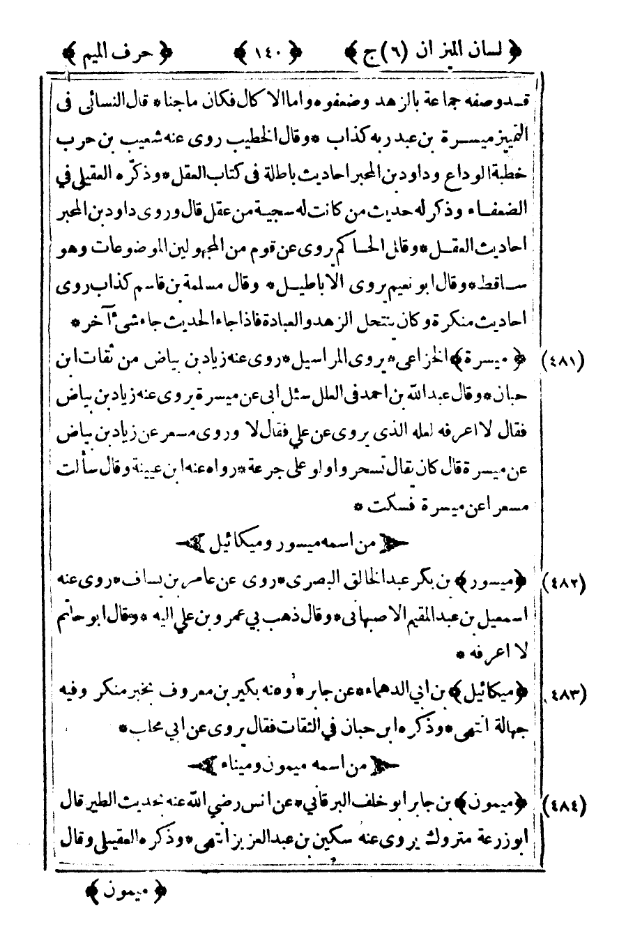 [482] "ميسور" بن بكر عبد الخالق البصري روى عن عامر بن يساف روى عنه إسماعيل بن عبد المقيم الأصبهاني وقال ذهب بي عمرو بن علي اليه وقال أبو حاتم لا اعرفه.