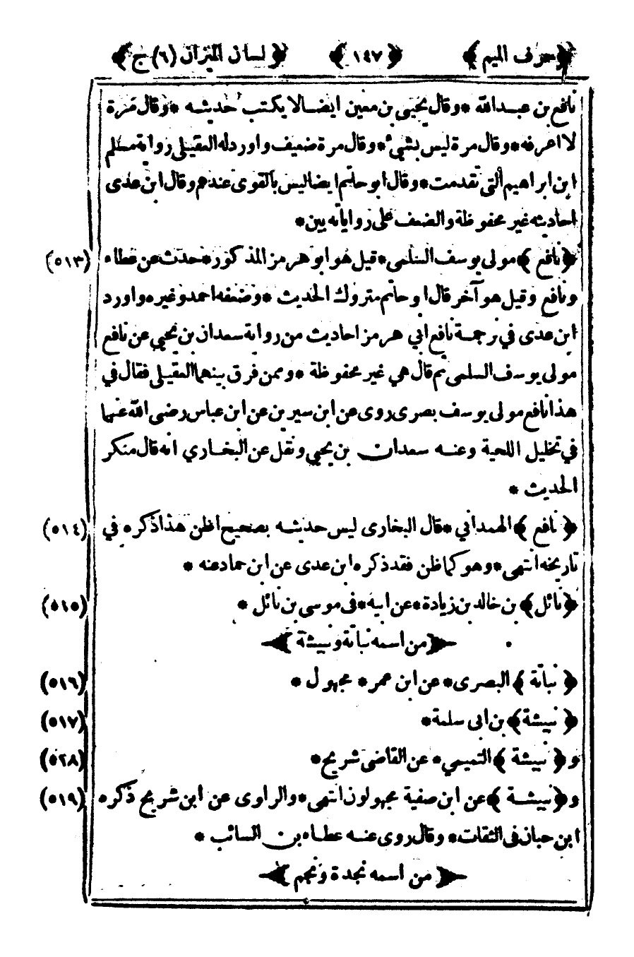 [516] "نباتة" البصري عن ابن عمر مجهول.