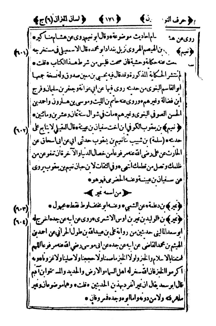 [603] "نمير" بن دعلمة عن الشعبي وعنه أبو مخنف لوط فقط مجهول.