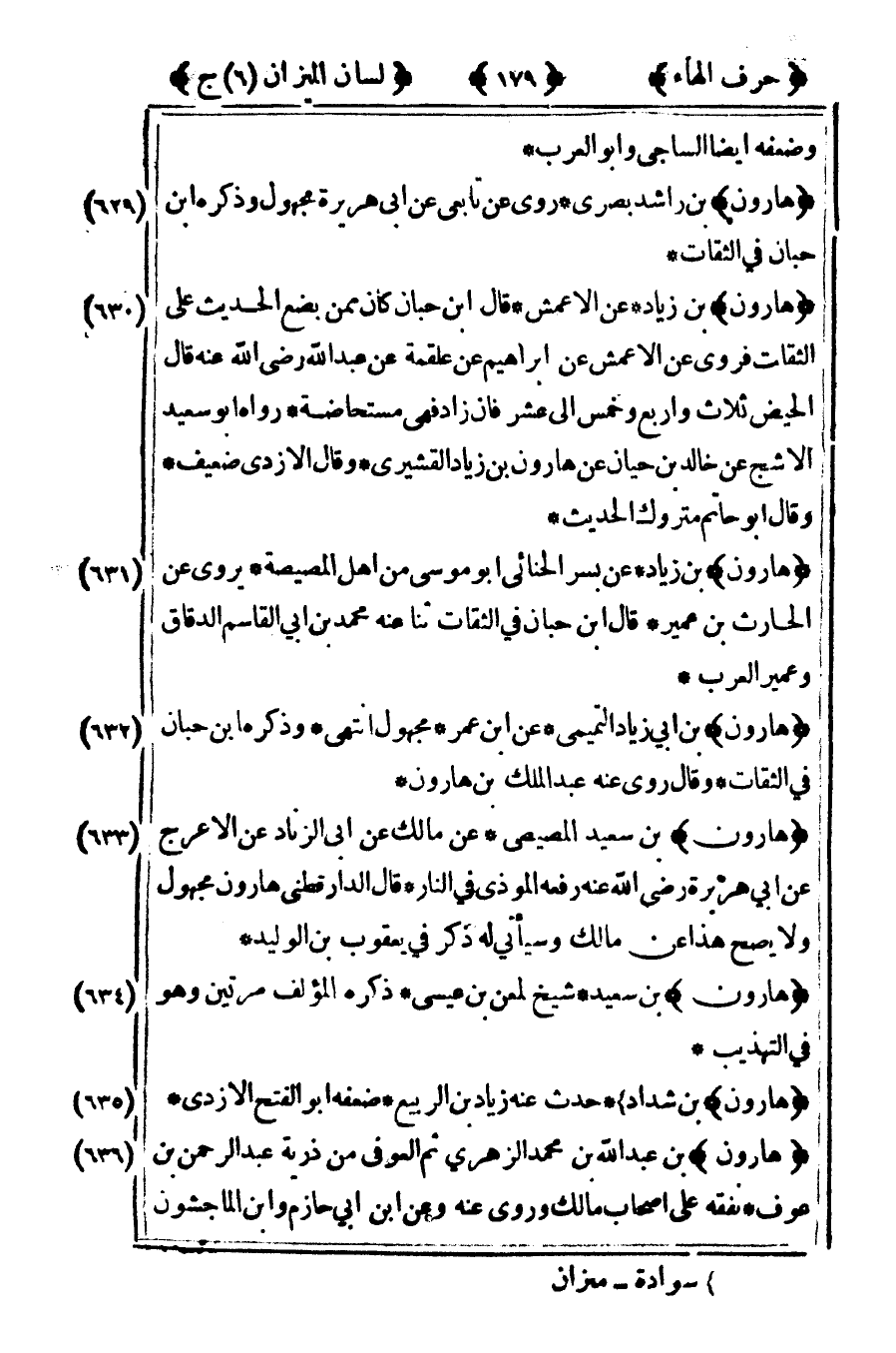 [640] "هارون" بن محمد أبو الطيب عن سعيد بن أبي عروبة قال يحيى بن معين كذاب كان في الحربية داود بن رشيد وغيره قالا حدثنا هارون بن محمد عن يحيى بن سعيد عن ابن المسيب عن أبي هريرة رضى الله عنه مرفوعا من جنب