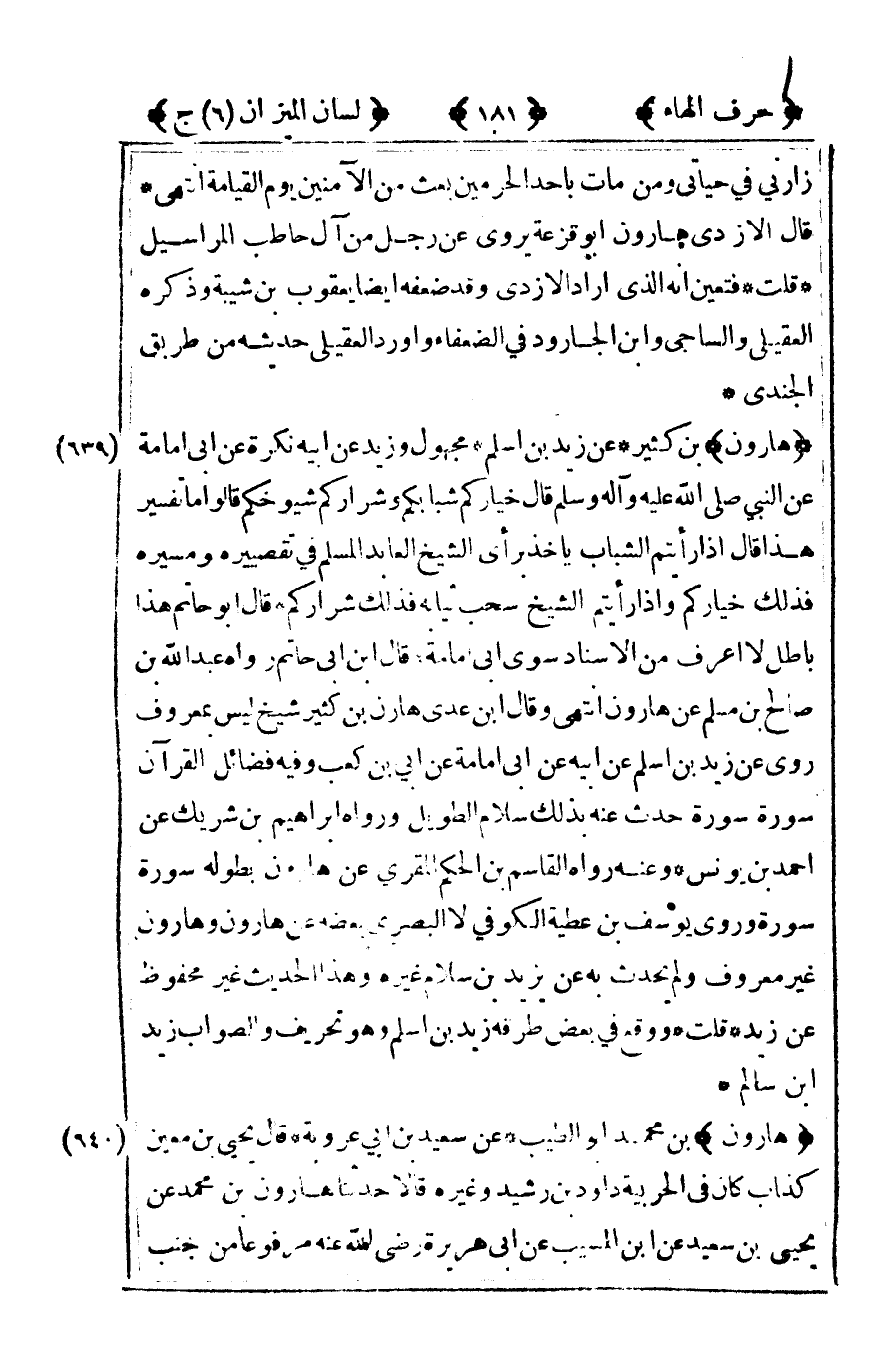 [646] "هارون" التيمي عنه أبو عيسى مجهولان قاله أبو حاتم ذكر المؤلف ذلك في ترجمة أبي قيس.