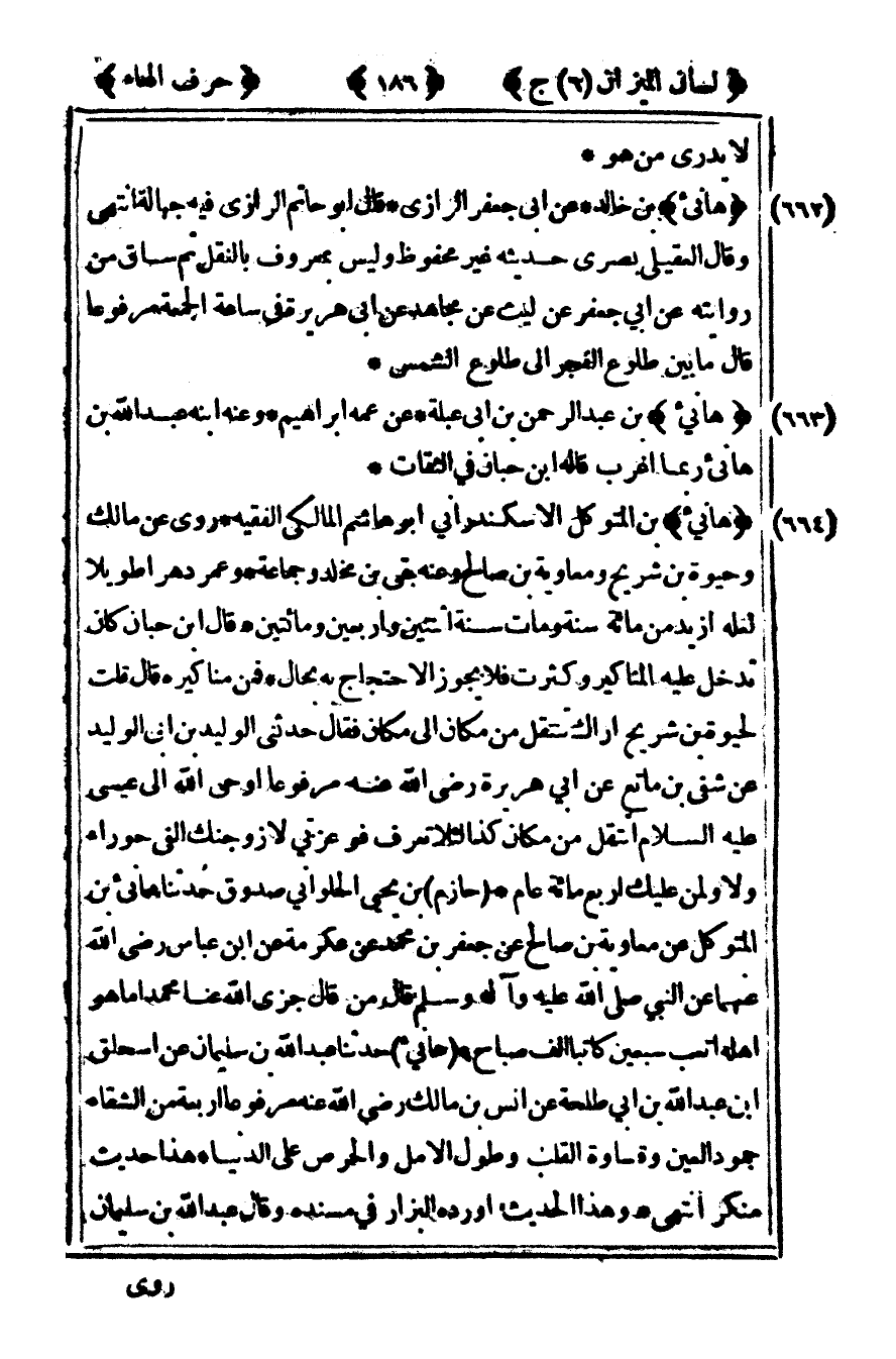 [672] "هبة الله" بن علي بن محمد أبو القاسم المروزي محدث كثير المحفوظ له قبول عند العامة إلا أنه كان غير ثقة روى عن أبي إسماعيل الأنصاري الهروي وغيره ومات سنة اثنتين وعشرين وخمس مائة.