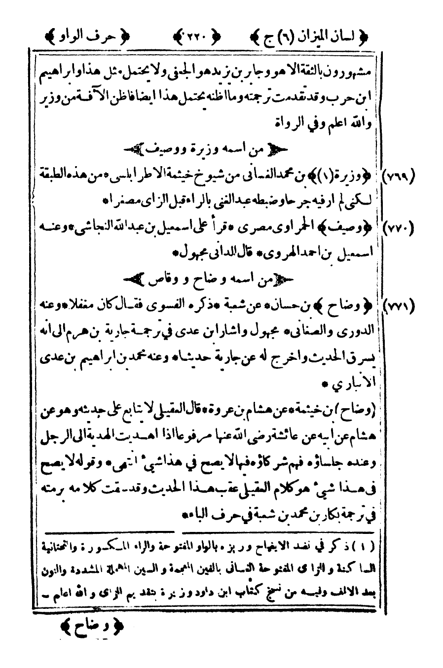 [769] "وزيرة" 1 بن محمد الغساني من شيوخ خيثمة الأطرابلسي من هذه الطبقة لكني لم ار فيه جرحا وضبطه عبد الغني بالراء قبل الزاي مصغرا.