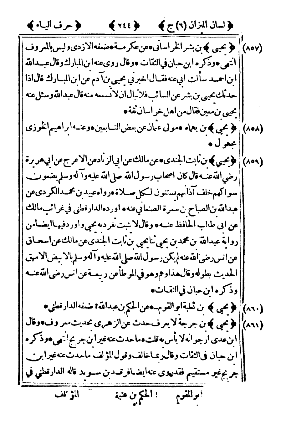 [860] "يحيى" بن ثعلبة أبو القوم1 عن الحكم بن عبد الله2 ضعفه الدارقطني.