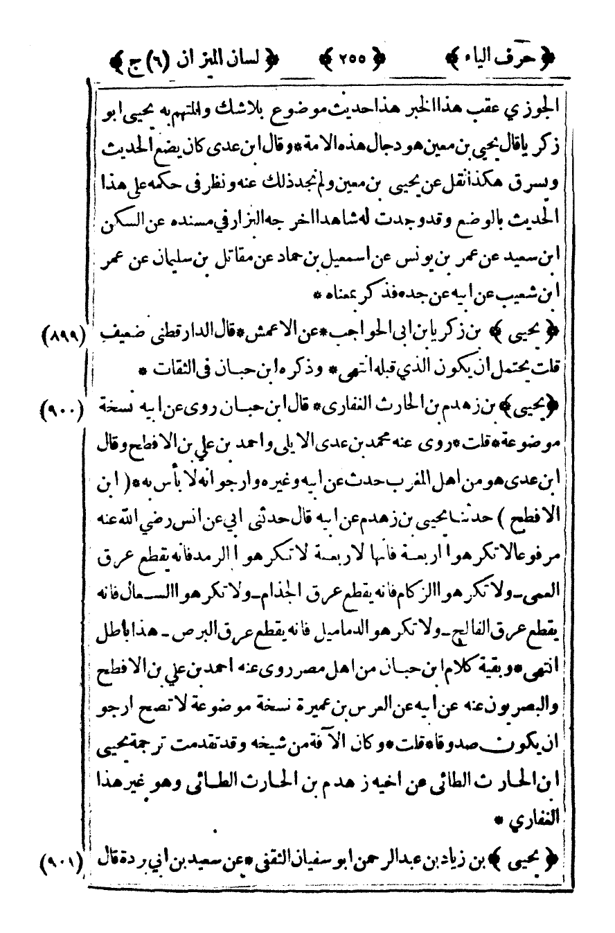 [899] "يحيى" بن زكريا بن أبي الحواجب عن الأعمش قال الدارقطني ضعيف قلت يحتمل أن يكون الذي قبله انتهى وذكره ابن حبان في الثقات.