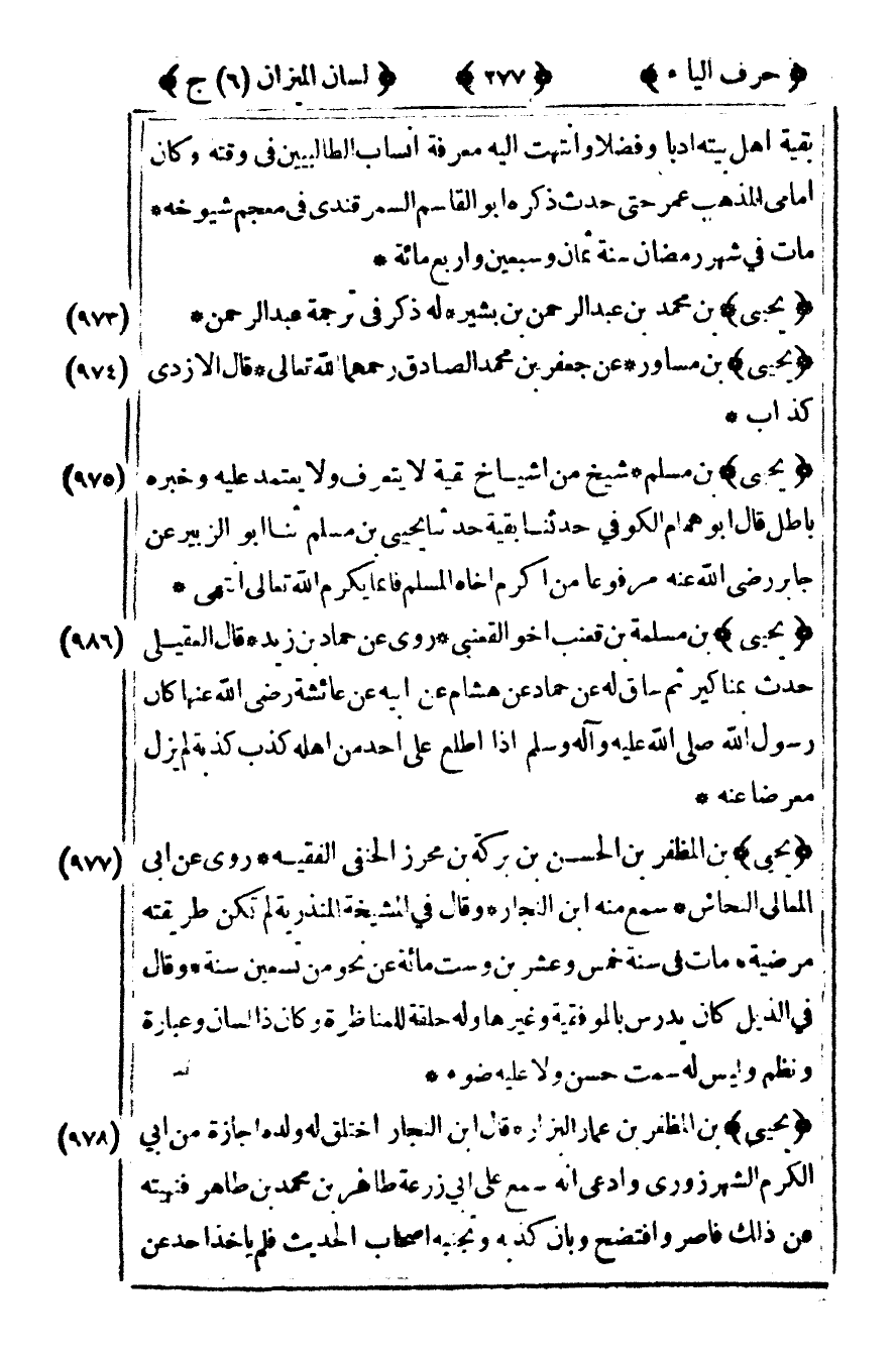 [974] "يحيى" بن مساور عن جعفر بن محمد الصادق رحمهما الله تعالى قال الأزدي كذاب.