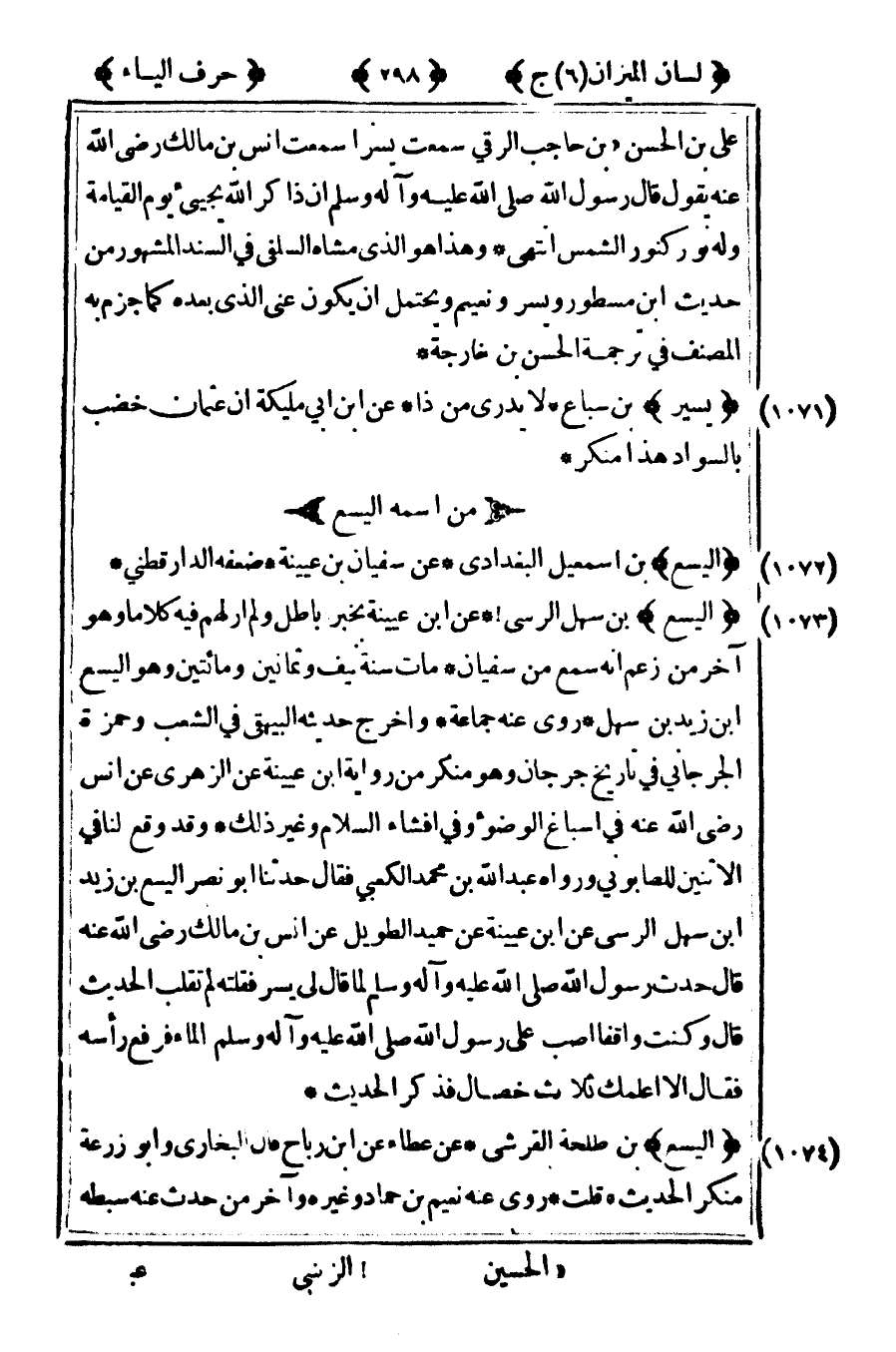 [1072] " اليسع" بن إسماعيل البغدادي عن سفي أن ابن عيينة ضعفه الدارقطني.