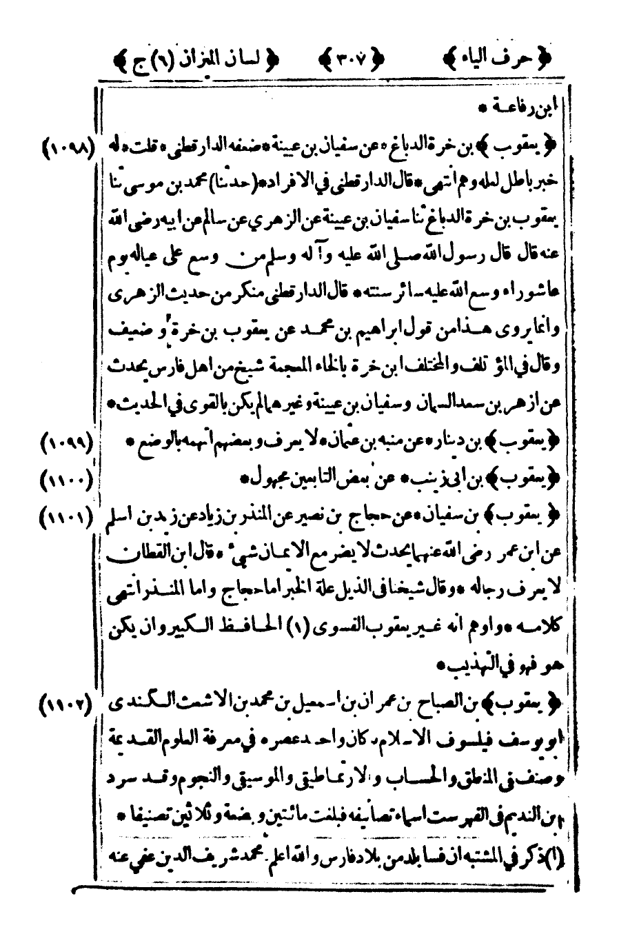 [1102] "يعقوب" بن الصباح بن عمر أن ابن إسماعيل بن محمد بن الأشعث الكندي أبو يوسف فيلسوف الإسلام كان واحد عصره في معرفة العلوم القديمة وصنف في المنطق والحساب والأرتماطيقي والموسيقى والنجوم وقد سرد بن النديم في الفهرست أسماء تصانيفه فبلغت مائتين وبضعة وثلاثين تصنيفا.