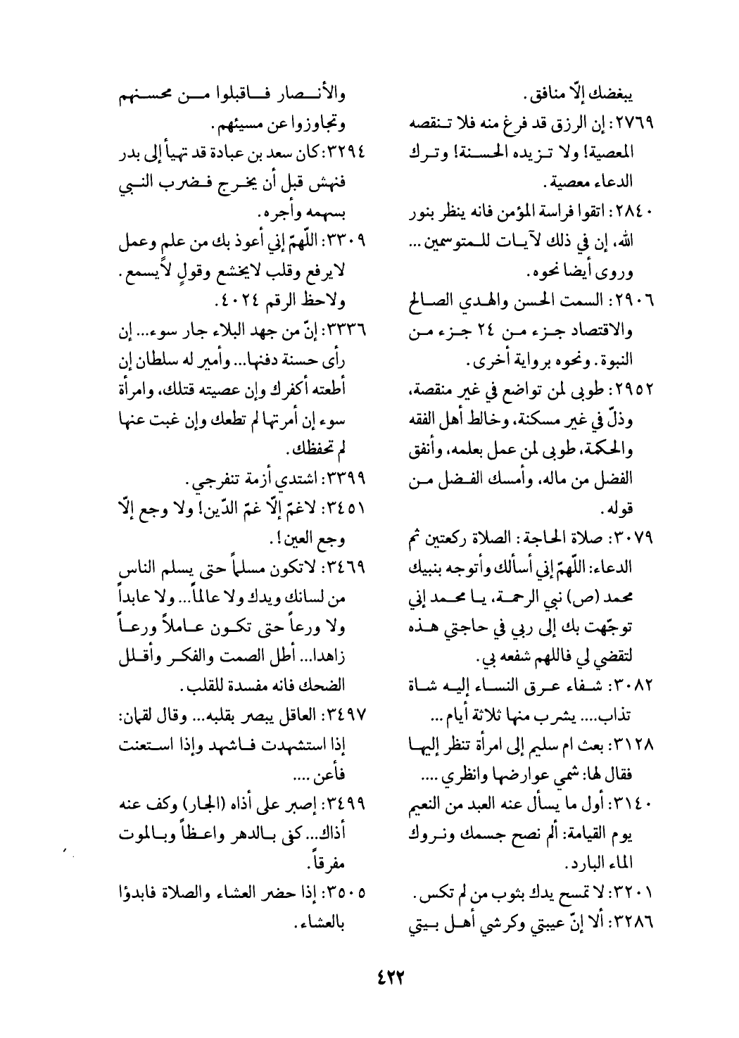 [من كلامه]: فاذكرني مكتوبه الكريم حقيقة الأمر، وحداني حسن هديه إلى سلوك جادة الصبر، معلّما أنّ الحمام منهل لا بدّ من وروده، وأن الأيّام مفرّقة بين الوادّ وودوده.