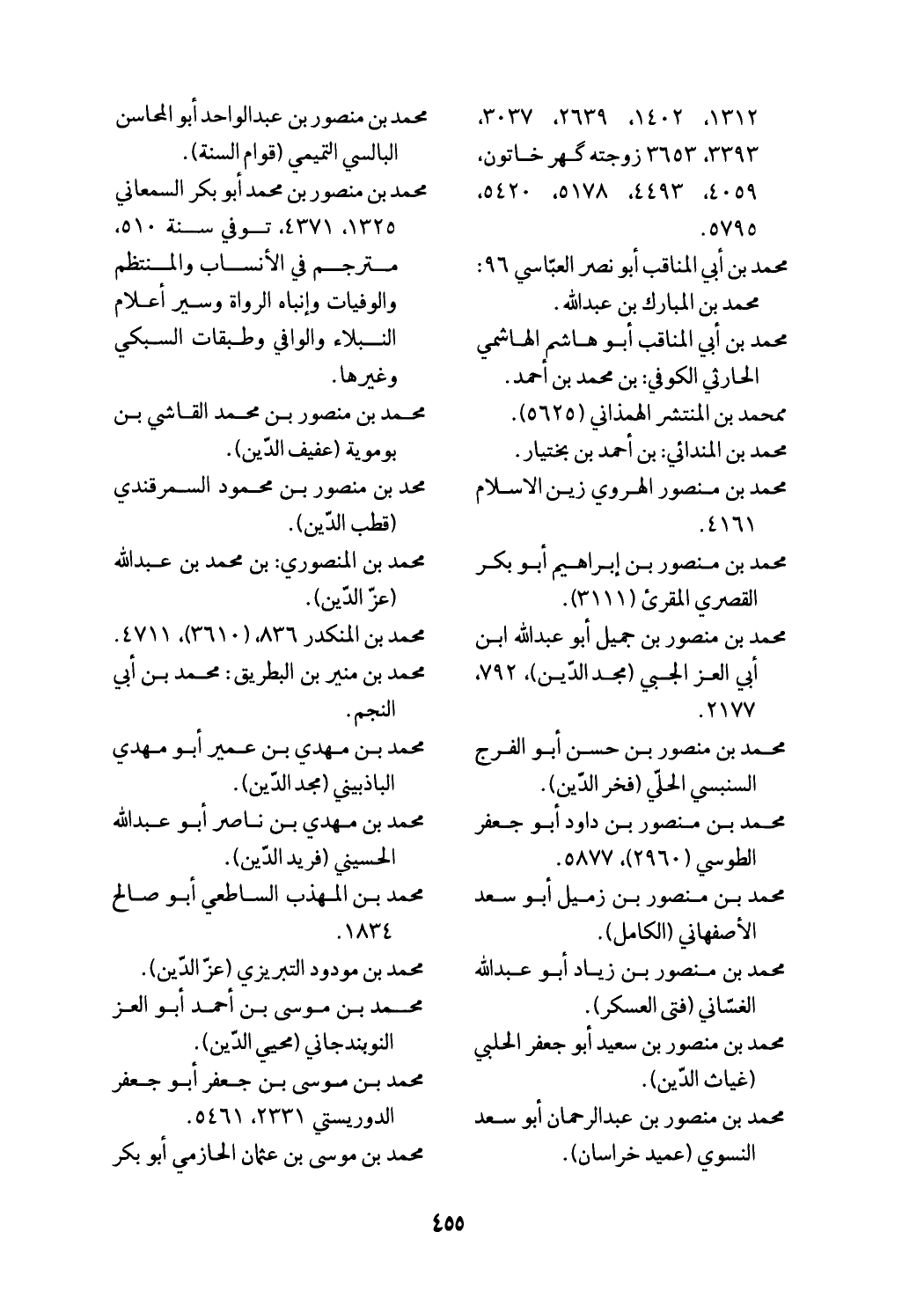 (¬2) ذكره ياقوت في معجمه في مادة (عرّمان) والتكميل منه حيث كان انقطاع في الأصل، وفيه: محمّد بن ميّاس بن أبي بكر بن عبد العزيز بن نصوان بن عبّاس بن رضوان بن منصور بن رويد بن صالح ... الزمار بن جابر بن سهي بن عليم