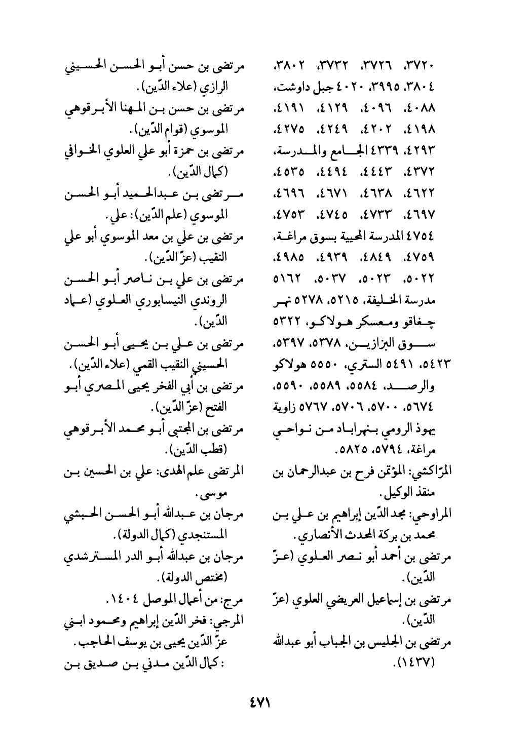 (¬3) تاريخ دمشق لابن عساكر كما في مختصره: 123/ 26: 79، ذيل تاريخ دمشق لابن القلانسي 460، الأنساب: المصيصي واللاذقي، تبيين كذب المفتري 330، المنتظم 129/ 10، معجم البلدان 6/ 5، سير الأعلام 118/ 20، طبقات السبكي 320/ 7 وغيرها. توفي سنة 542.