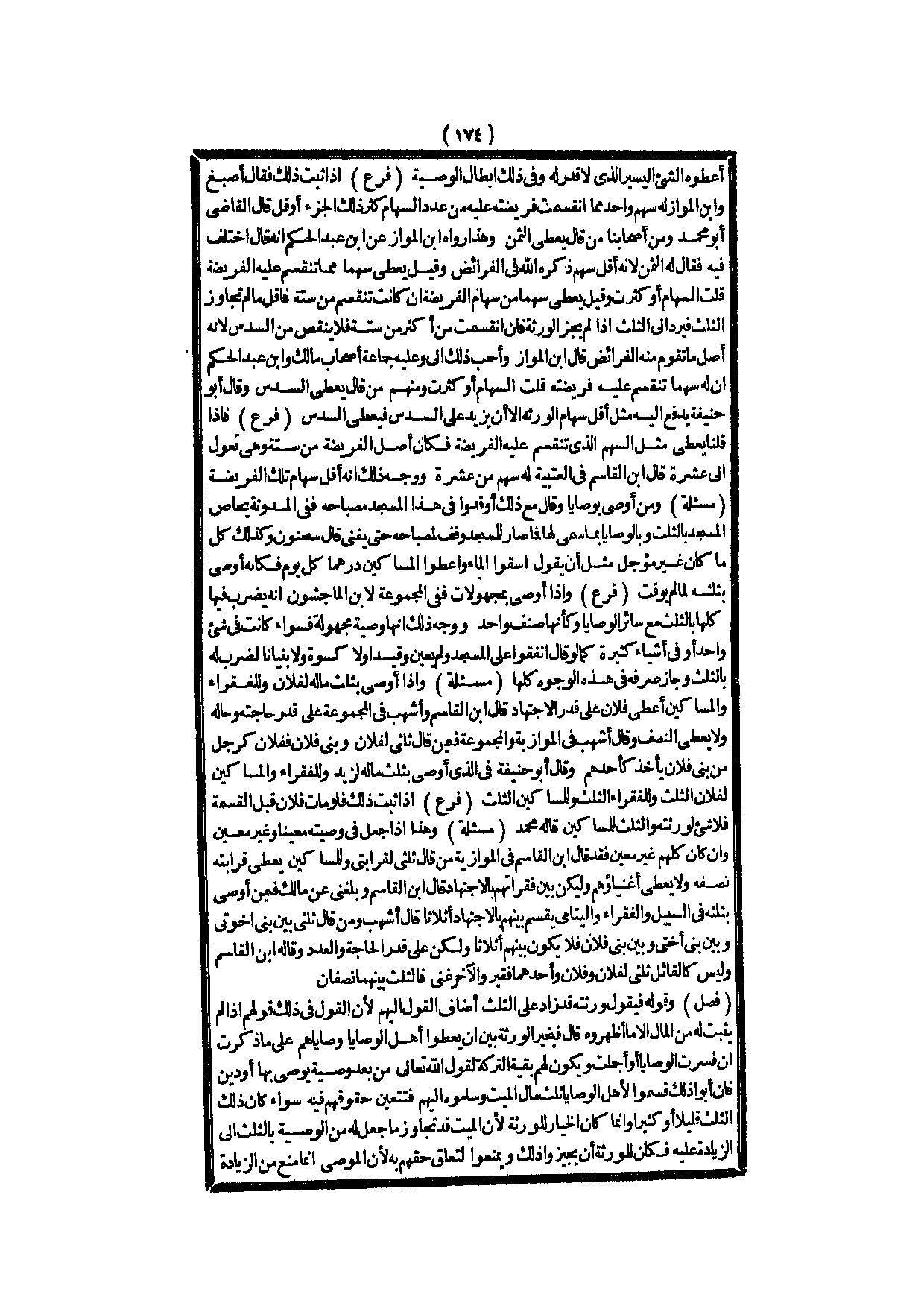 (فَرْعٌ) وَإِذَا أَوْصَى بِمَجْهُولَاتٍ فَفِي الْمَجْمُوعَةِ لِابْنِ الْمَاجِشُونِ أَنَّهُ يُضْرَبُ فِيهَا كُلُّهَا بِالثُّلُثِ مَعَ سَائِرِ الْوَصَايَا وَكَأَنَّهَا صِنْفٌ وَاحِدٌ، وَوَجْهُ ذَلِكَ أَنَّهَا وَصِيَّةٌ مَجْهُولَةٌ فَسَوَاءٌ كَانَتْ فِي شَيْءٍ وَاحِدٍ، أَوْ فِي أَشْيَاءَ كَثِيرَةٍ كَمَا لَوْ قَالَ أَنْفَقُوا عَلَى الْمَسْجِدِ وَلَمْ يُعَيَّنْ وَقِيدًا وَلَا كِسْوَةً وَلَا بُنْيَانًا لَضَرَبَ لَهُ بِالثُّلُثِ وَجَازَ صَرْفُهُ فِي هَذِهِ الْوُجُوهِ كُلِّهَا.