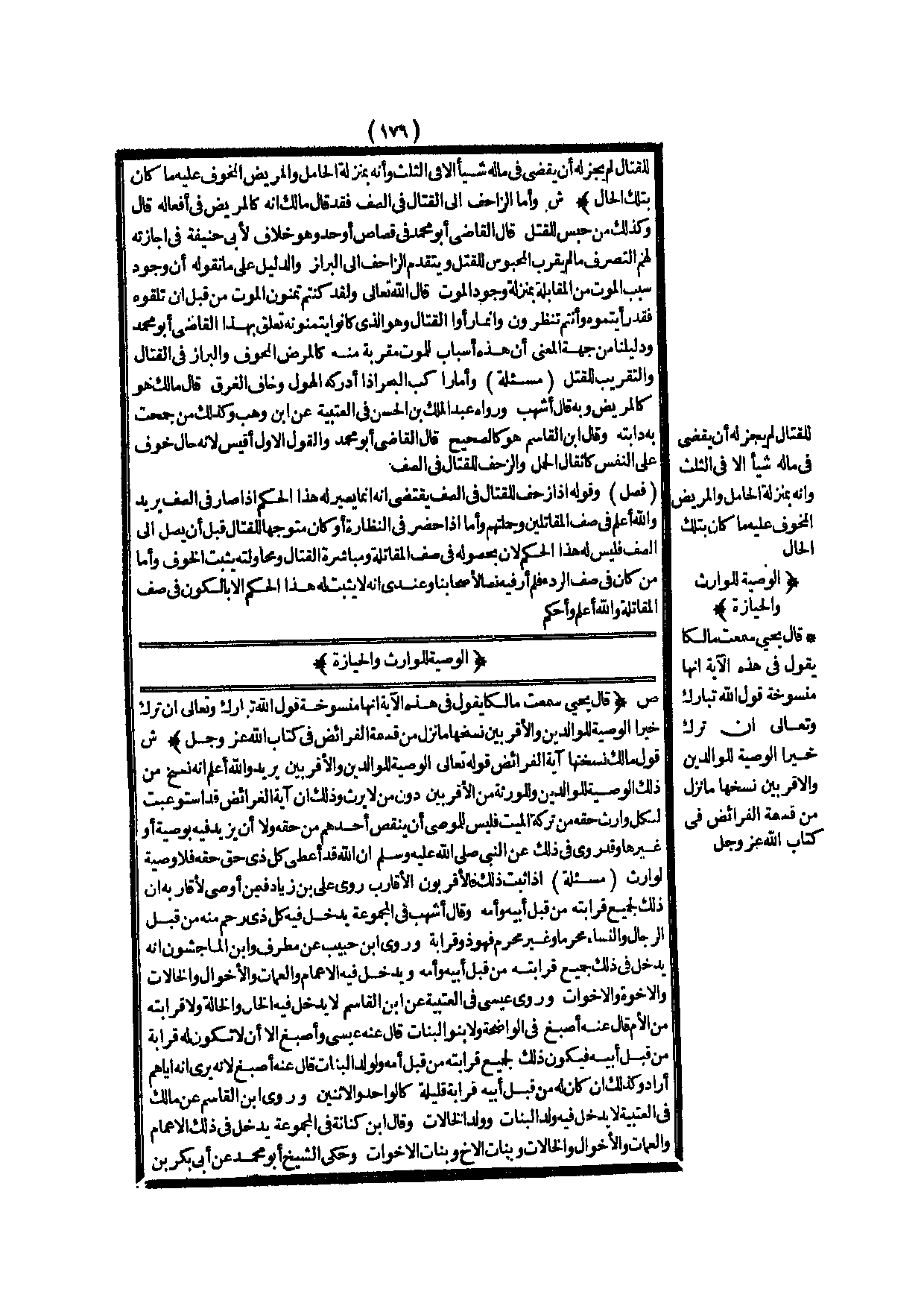 (ش) : قَوْلُ مَالِكٍ نَسَخَتْهَا آيَةُ الْفَرَائِضِ قَوْله تَعَالَى {الْوَصِيَّةُ لِلْوَالِدَيْنِ وَالأَقْرَبِينَ} [البقرة: 180] يُرِيدُ وَاَللَّهُ أَعْلَمُ أَنَّهُ نَسَخَ مِنْ ذَلِكَ الْوَصِيَّةَ لِلْوَالِدَيْنِ وَلِلْوَرَثَةِ مِنْ الْأَقْرَبِينَ دُونَ مَنْ لَا يَرِثُ وَذَلِكَ أَنَّ آيَةَ الْفَرَائِضِ قَدْ اسْتَوْعَبَتْ لِكُلِّ وَارِثٍ حَقَّهُ مِنْ تَرِكَةِ الْمَيِّتِ فَلَيْسَ لِلْمُوصِي أَنْ يُنْقِصَ أَحَدَهُمْ مِنْ حَقِّهِ وَلَا أَنْ يَزِيدَ فِيهِ بِوَصِيَّةٍ أَوْ غَيْرِهَا.