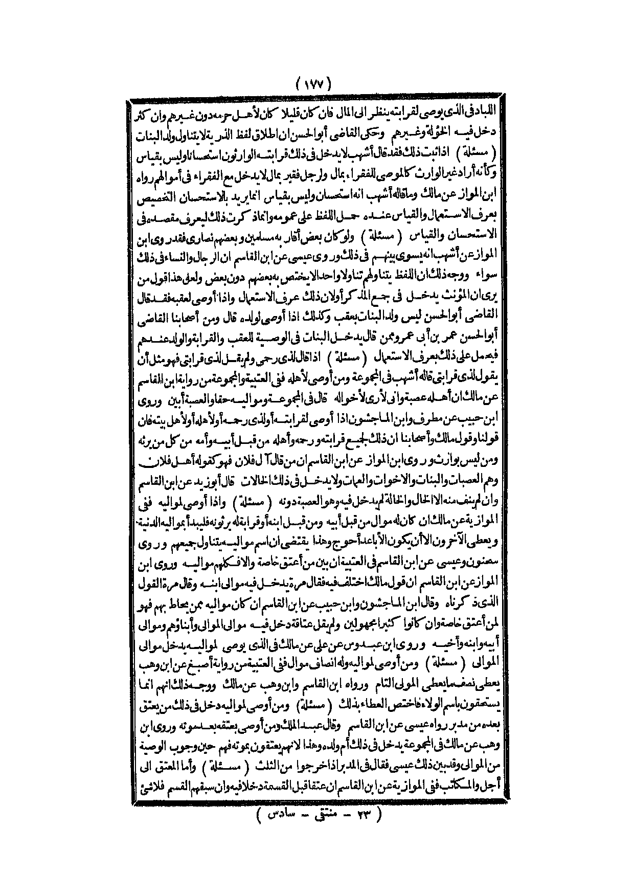 وَقَالَ ابْنُ الْمَاجِشُونِ وَابْنُ حَبِيبٍ عَنْ ابْنِ الْقَاسِمِ إنْ كَانَ مَوَالِيهِ مِمَّنْ يُحَاطُ بِهِمْ فَهُوَ لِمَنْ أَعْتَقَ خَاصَّةً، وَإِنْ كَانُوا كَثِيرًا مَجْهُولِينَ وَلَمْ يَقُلْ عَتَاقَةً دَخَلَ فِيهِ مَوَالِي الْمَوَالِي وَأَبْنَاؤُهُمْ وَمَوَالِي أَبِيهِ وَابْنِهِ وَأَخِيهِ وَرَوَى ابْنُ عَبْدُوسٍ عَنْ عَلِيٍّ عَنْ مَالِكٍ فِي الَّذِي يُوصِي لِمَوَالِيهِ يَدْخُلُ مَوَالِي الْمَوَالِي.