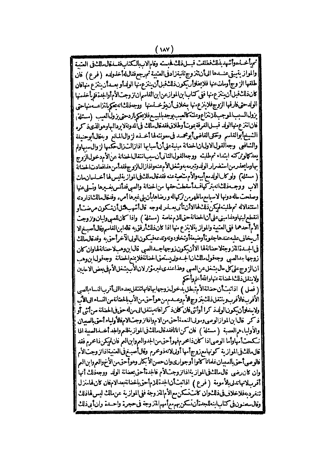 (فَرْعٌ) إذَا ثَبَتَ أَنَّ الْجَدَّةَ لِلْأُمِّ أَحَقُّ بِالْحَضَانَةِ بَعْدَ الْأُمِّ فَإِنْ كَانَ لَهَا مَنْزِلٌ تَنْفَرِدُ بِهِ فَلَا خِلَافَ فِي ذَلِكَ، وَإِنْ كَانَتْ تَسْكُنُ مَعَ الْأُمِّ الْمُتَزَوِّجَةِ فَفِي الْمَوَّازِيَّةِ عَنْ مَالِكٍ لَيْسَ لَهَا ذَلِكَ.
