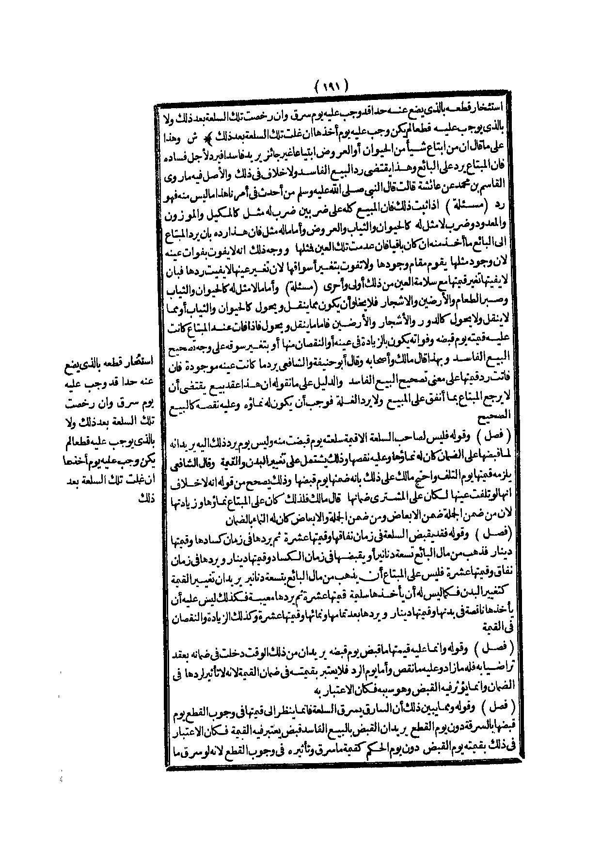 ـــــــــــــــــــــــــــــQ (ش) : وَهَذَا عَلَى مَا قَالَ إنَّ مَنْ ابْتَاعَ شَيْئًا مِنْ الْحَيَوَانِ أَوْ الْعُرُوضِ ابْتِيَاعًا غَيْرَ جَائِزٍ يُرِيدُ فَاسِدًا فَيُرَدُّ لِأَجْلِ فَسَادِهِ فَإِنَّ الْمُبْتَاعَ يُرَدُّ عَلَى الْبَائِعِ وَهَذَا يَقْتَضِي رَدَّ الْبَيْعِ الْفَاسِدِ وَلَا خِلَافَ فِي ذَلِكَ وَالْأَصْلُ فِيهِ مَا رَوَى الْقَاسِمُ بْنُ مُحَمَّدٍ عَنْ عَائِشَةَ قَالَتْ قَالَ النَّبِيُّ - صَلَّى اللَّهُ عَلَيْهِ وَسَلَّمَ - «مَنْ أَحْدَثَ فِي أَمْرِنَا هَذَا مَا لَيْسَ مِنْهُ فَهُوَ رَدٌّ» .