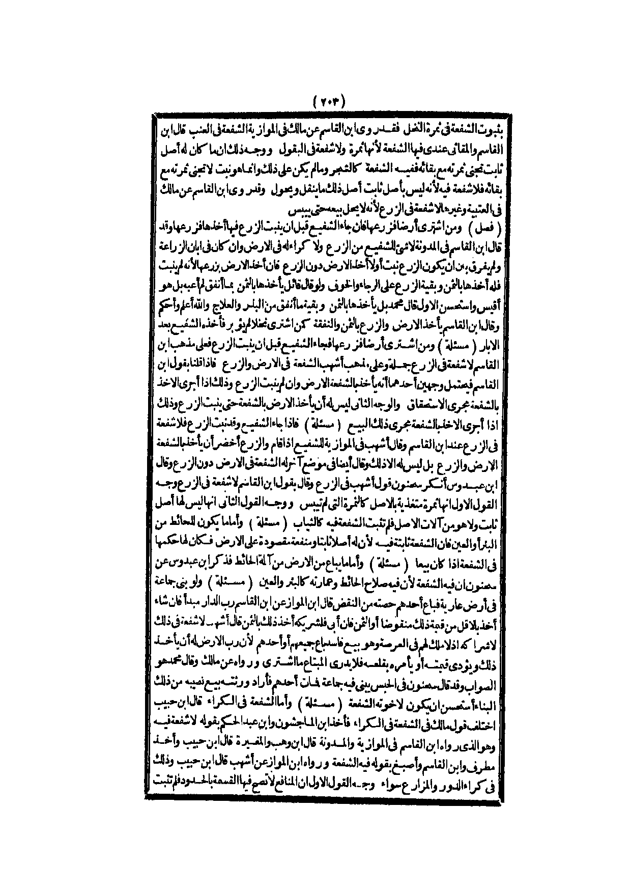 وَأَمَّا الشُّفْعَةُ فِي الْكِرَاءِ قَالَ ابْنُ حَبِيبٍ اخْتَلَفَ قَوْلُ مَالِكٍ فِي الشُّفْعَةِ فِي الْكِرَاءِ فَأَخَذَ ابْنُ الْمَاجِشُونِ وَابْنُ عَبْدِ الْحَكَمِ بِقَوْلِهِ لَا شُفْعَةَ فِيهِ وَهُوَ الَّذِي رَوَاهُ ابْنُ الْقَاسِمِ فِي الْمَوَّازِيَّةِ وَالْمُدَوَّنَةِ قَالَ ابْنُ وَهْبٍ وَالْمُغِيرَةُ قَالَ ابْنُ حَبِيبٍ وَأَخَذَ مُطَرِّفٌ وَابْنُ الْقَاسِمِ وَأَصْبَغُ بِقَوْلِهِ فِيهِ الشُّفْعَةُ وَرَوَاهُ ابْنُ الْمَوَّازِ عَنْ أَشْهَبَ قَالَ ابْنُ حَبِيبٍ، وَذَلِكَ فِي كِرَاءِ الدُّورِ وَالْمَزَارِعِ سَوَاءٌ وَجْهُ الْقَوْلِ الْأَوَّلِ أَنَّ الْمَنَافِعَ لَا تَصِحُّ فِيهَا الْقِسْمَةُ بِالْحُدُودِ فَلَمْ تَثْبُتْ
