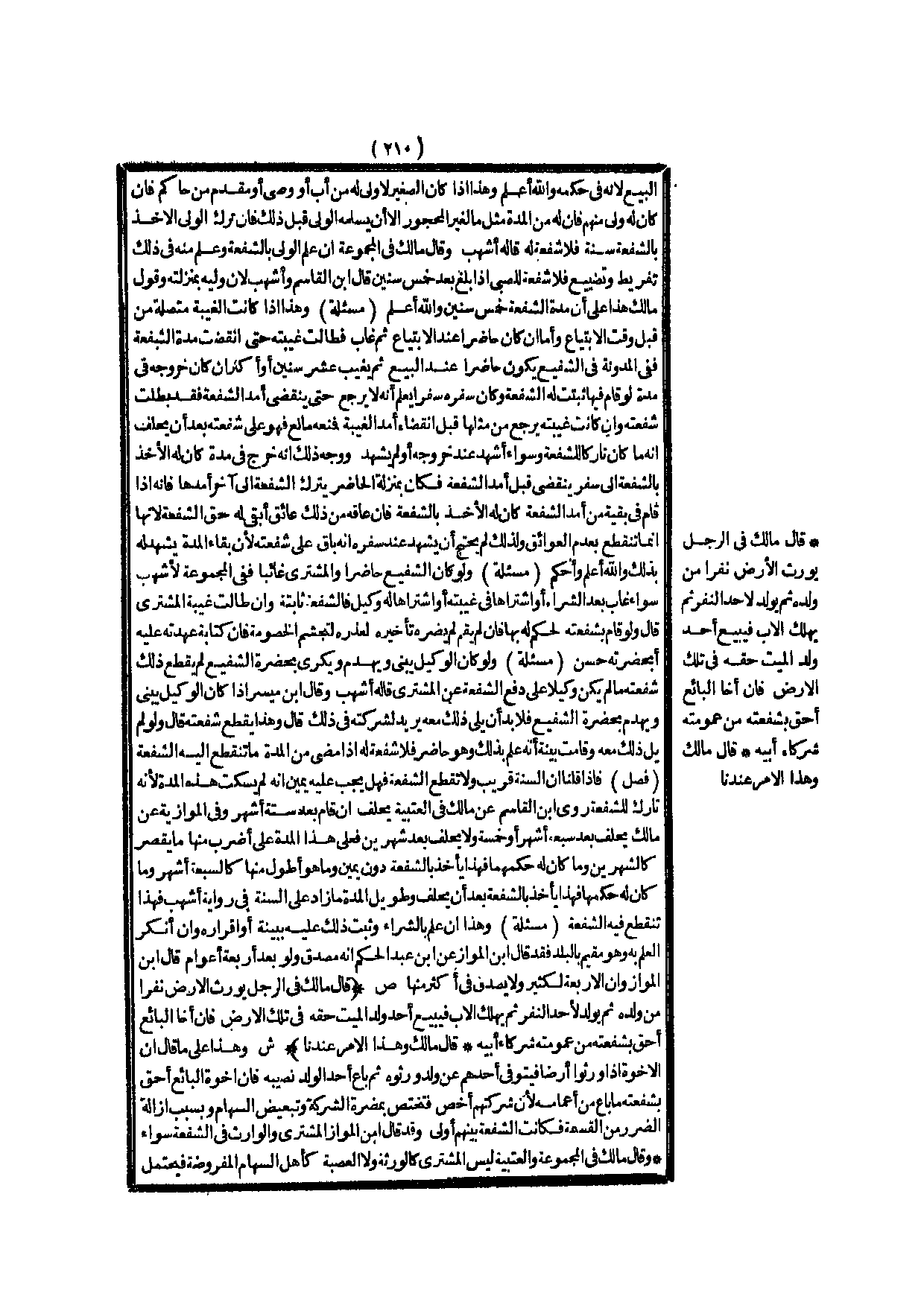 (ص) : (قَالَ مَالِكٌ فِي الرَّجُلِ يُوَرِّثُ الْأَرْضَ نَفَرًا مِنْ وَلَدِهِ، ثُمَّ يُولَدُ لِأَحَدِ النَّفَرِ، ثُمَّ يَهْلَكُ الْأَبُ فَيَبِيعُ أَحَدُ وَلَدِ الْمَيِّتِ حَقَّهُ فِي تِلْكَ الْأَرْضِ فَإِنَّ أَخَا الْبَائِعِ أَحَقُّ بِشُفْعَتِهِ مِنْ عُمُومَتِهِ شُرَكَاءِ أَبِيهِ قَالَ مَالِكٌ وَهَذَا الْأَمْرُ عِنْدَنَا) .