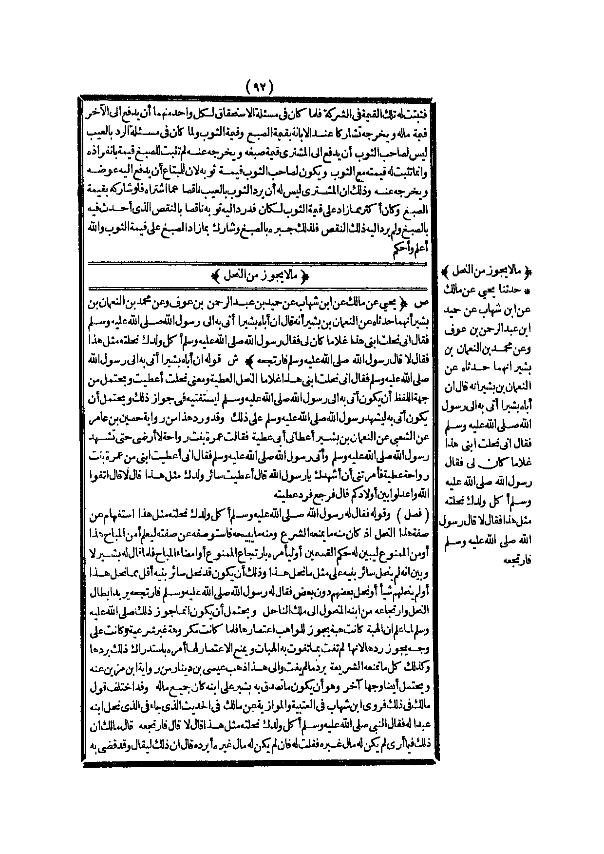 (مَا لَا يَجُوزُ مِنْ النَّحْلِ) (ص) : (يَحْيَى عَنْ مَالِك عَنْ ابْنِ شِهَابٍ عَنْ حُمَيْدٍ بْنِ عَبْدِ الرَّحْمَنِ بْنِ عَوْفٍ وَعَنْ مُحَمَّدِ بْنِ النُّعْمَانِ بْنِ بَشِيرٍ أَنَّهُمَا حَدَّثَاهُ «عَنْ النُّعْمَانِ بْنِ بَشِيرٍ أَنَّهُ قَالَ: إنَّ أَبَاهُ بَشِيرًا أَتَى بِهِ إلَى رَسُولِ اللَّهِ - صَلَّى اللَّهُ عَلَيْهِ وَسَلَّمَ - فَقَالَ إنِّي نَحَلْت ابْنِي هَذَا غُلَامًا كَانَ لِي فَقَالَ رَسُولُ اللَّهِ - صَلَّى اللَّهُ عَلَيْهِ وَسَلَّمَ -: أَكُلَّ وَلَدِك نَحَلْتَهُ مِثْلَ هَذَا؟ فَقَالَ: لَا، قَالَ رَسُولُ اللَّهِ - صَلَّى اللَّهُ عَلَيْهِ وَسَلَّمَ -: فَارْتَجِعْهُ» ) .