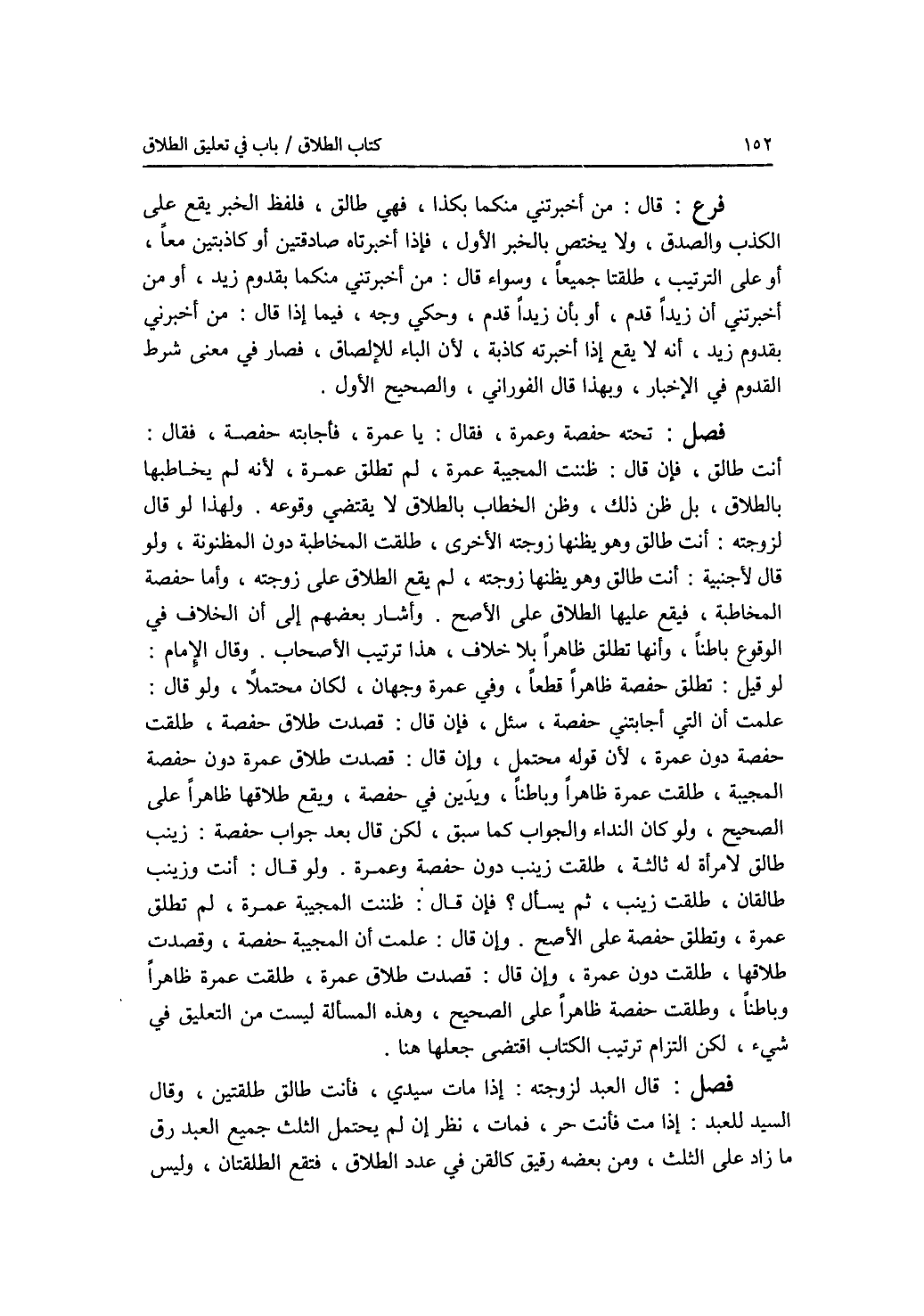 فرع قال: من أخبرتني منكما بكذا، فهي طالق، فلفظ الخبر يقع على الكذب والصدق، ولا يختص بالخبر الاول، فإذا أخبرتاه صادقتين أو كاذبتين معا، أو على الترتيب، طلقتا جميعا، وسواء قال: من أخبرتني منكما بقدوم زيد، أو من أخبرتني أن زيدا قدم، أو بأن زيدا قدم، وحكي وجه، فيما إذا قال: من أخبرني بقدوم زيد، أنه لا يقع إذا أخبرته كاذبة، لان الباء للالصاق، فصار في معنى شرط القدوم في الاخبار، وبهذا قال الفوراني، والصحيح الاول. فصل تحته حفصة وعمرة، فقال: يا عمرة، فأجابته حفصة، فقال: أنت طالق، فإن قال: ظننت المجيبة عمرة، تطلق عمرة، لم تطلق عمرة، لانه لم يخاطبها بالطلاق، بل ظن ذلك، وظن الخطاب بالطلاق لا يقتضي وقوعه. ولهذا لو قال لزوجته: أنت طالق وهو يظنها زوجته الاخرى، طلقت المخاطبة دون المظنونة، ولو قال لاجنبية: أنت طالق وهو يظنها زوجته، لم يقع الطلاق على زوجته، وأما حفصة المخاطبة، فيقع عليها الطلاق على الاصح. وأشار بعضهم إلى أن الخلاف في الوقوع باطنا، وأنها تطلق ظاهرا بلا خلاف، هذا ترتيب الاصحاب. وقال الامام: لو قيل: تطلق حفصة ظاهرا قطعا، وفي عمرة وجهان، لكان محتملا، ولو قال: علمت أن التي أجابتني حفصة، سئل، فإن قال: قصدت طلاق حفصة، طلقت حفصة دون عمرة، لان قوله محتمل، وإن قال: قصدت طلاق عمرة دون حفصة المجيبة، طلقت عمرة ظاهرا وباطنا، ويدين في حفصة، ويقع طلاقها ظاهرا على الصحيح، ولو كان النداء والجواب كما سبق، لكن قال بعد جواب حفصة: زينب طالق لامرأة له ثالثة، طلقت زينب دون حفصة وعمرة. ولو قال: أنت وزينب طالقان، طلقت زينب، ثم يسأل ؟ فإن قال: ظننت المجيبة عمرة، لم تطلق عمرة، وتطلق حفصة على الاصح. وإن قال: علمت أن المجيبة حفصة، وقصدت طلاقها، طلقت دون عمرة، وإن قال: قصدت طلاق عمرة، طلقت عمرة ظاهرا وباطنا، وطلقت حفصة ظاهرا على الصحيح، وهذه المسألة ليست من التعليق في شئ، لكن التزام ترتيب الكتاب اقتضى جعلها هنا. فصل قال العبد لزوجته: إذا مات سيدي، فأنت طالق طلقتين، وقال السيد للعبد: إذا مت فأنت حر، فمات، نظر إن لم يحتمل الثلث جميع العبد رق ما زاد على الثلث، ومن بعضه رقيق كالقن في عدد الطلاق، فتقع الطلقتان، وليس