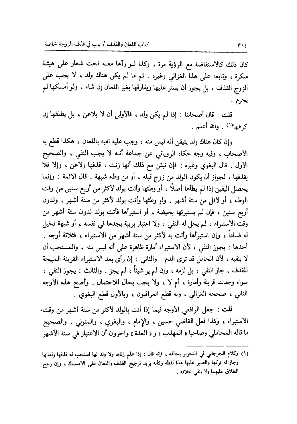 كان ذلك كالاستفاضة مع الرؤية مرة، وكذا لو رآها معه تحت شعار على هيئة منكرة، وتابعه على هذا الغزالي وغيره. ثم ما لم يكن هناك ولد، لا يجب على الزوج القذف، بل يجوز أن يستر عليها ويفارقها بغير اللعان إن شاء، ولو أمسكها لم يحرم. قلت: قال أصحابنا: إذا لم يكن ولد، فالاولى أن لا يلاعن، بل يطلقها إن كرهها. والله أعلم. وإن كان هناك ولد يتيقن أنه ليس منه، وجب عليه نفيه باللعان، هكذا قطع به الاصحاب، وفيه وجه حكاه الروياني عن جماعة أنه لا يجب النفي، والصحيح الاول. قال البغوي وغيره: فإن تيقن مع ذلك أنها زنت، قذفها ولاعن، وإلا فلا يقذفها، لجواز أن يكون الولد من زوج قبله، أو من وطئ شبهة. قال الائمة: وإنما يحصل اليقين إذا لم يطأها أصلا، أو وطئها وأتت بولد لاكثر من أربع سنين من وقت الوطئ، أو لاقل من ستة أشهر. ولو وطئها وأتت بولد لاكثر من ستة أشهر، ولدون أربع سنين، فإن لم يستبرئها بحيضة، أو استبرأها فأتت بولد لدون ستة أشهر من وقت الاستبراء، لم يحل له النفي، ولا اعتبار بريبة يجدها في نفسه، أو شبهة تخيل له فسادا، وإن استبرأها وأتت به لاكثر من ستة أشهر من الاستبراء، فثلاثة أوجه. أحدها: يجوز النفي، لان الاستبراء أمارة ظاهرة على أنه ليس منه، والمستحب أن لا ينفيه، لان الحامل قد ترى الدم. والثاني: إن رأى بعد الاستبراء القرينة المبيحة للقذف، جاز النفي، بل لزمه، وإن لم ير شيئا، لم يجز. والثالث: يجوز النفي، سواء وجدت قرينة وأمارة، أم لا، ولا يجب بحال للاحتمال. وأصح هذه الاوجه الثاني، صححه الغزالي، وبه قطع العراقيون، وبالاول قطع البغوي. قلت: جعل الرافعي الاوجه فيما إذا أتت بالولد لاكثر من ستة أشهر من وقت الاستبراء، وكذا فعل القاضي حسين، والامام، والبغوي، والمتولي. والصحيح ما قاله المحاملي وصاحبا المهذب والعدة وآخرون أن الاعتبار في ستة الاشهر