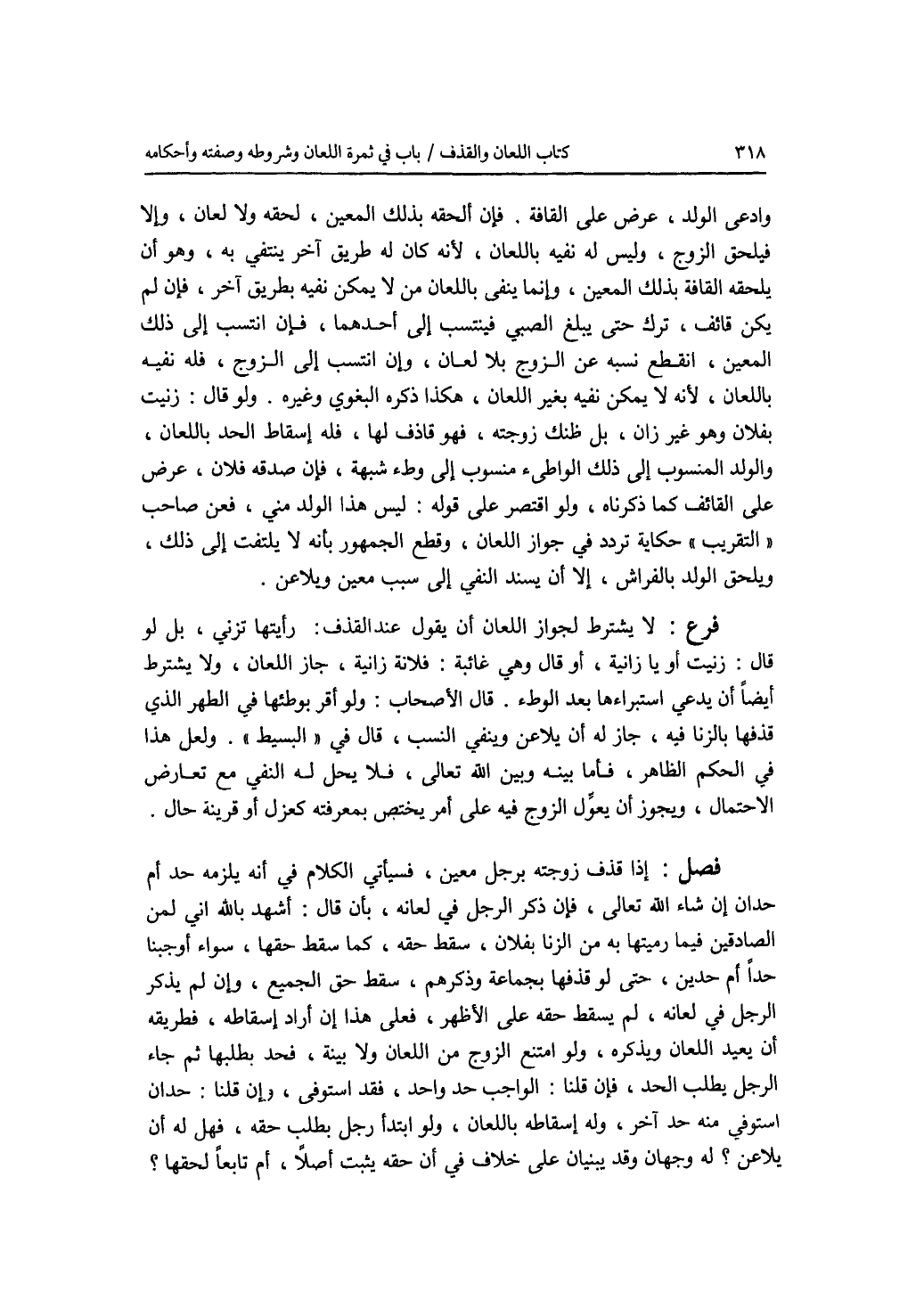 فصل إذا قذف زوجته برجل معين، فسيأتي الكلام في أنه يلزمه حد أم حدان إن شاء الله تعالى، فإن ذكر الرجل في لعانه، بأن قال: أشهد بالله اني لمن الصادقين فيما رميتها به من الزنا بفلان، سقط حقه، كما سقط حقها، سواء أوجبنا حدا أم حدين، حتى لو قذفها بجماعة وذكرهم، سقط حق الجميع، وإن لم يذكر الرجل في لعانه، لم يسقط حقه على الاظهر، فعلى هذا إن أراد إسقاطه، فطريقه أن يعيد اللعان ويذكره، ولو امتنع الزوج من اللعان ولا بينة، فحد بطلبها ثم جاء الرجل يطلب الحد، فإن قلنا: الواجب حد واحد، فقد استوفى، وإن قلنا: حدان استوفي منه حد آخر، وله إسقاطه باللعان، ولو ابتدأ رجل بطلب حقه، فهل له أن يلاعن ؟ له وجهان وقد يبنيان على خلاف في أن حقه يثبت أصلا، أم تابعا لحقها ؟
