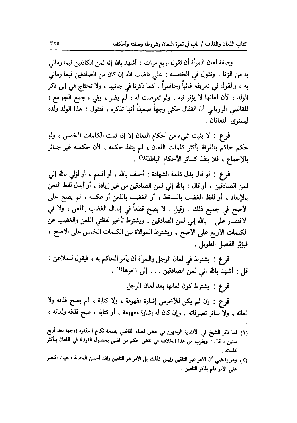 وصفة لعان المرأة أن تقول أربع مرات: أشهد بالله إنه لمن الكاذبين فيما رماني به من الزنا، وتقول في الخامسة: علي غضب الله إن كان من الصادقين فيما رماني به، والقول في تعريفه غائبا وحاضرا، كما ذكرنا في جانبها، ولا تحتاج هي إلى ذكر الولد، لان لعانها لا يؤثر فيه. ولو تعرضت له، لم يضر، وفي جمع الجوامع للقاضي الروياني أن القفال حكى وجها ضعيفا أنها تذكره، فتقول: هذا الولد ولده ليستوي اللعانان. فرع لا يثبت شئ من أحكام اللعان إلا إذا تمت الكلمات الخمس، ولو حكم حاكم بالفرقة بأكثر كلمات اللعان، لم ينفذ حكمه، لان حكمه غير جائز بالاجماع، فلا ينفذ كسائر الاحكام الباطلة. فرع لو قال بدل كلمة الشهادة: أحلف بالله، أو أقسم، أو أؤلي بالله إني لمن الصادقين، أو قال: بالله إني لمن الصادقين من غير زيادة، أو أبدل لفظ اللعن بالابعاد، أو لفظ الغضب بالسخط، أو الغضب باللعن أو عكسه، لم يصح على الاصح في جميع ذلك. وقيل: لا يصح قطعا في إبدال الغضب باللعن، ولا في الاقتصار على: بالله إني لمن الصادقين. ويشترط تأخير لفظتي اللعن والغضب عن الكلمات الاربع على الاصح، ويشترط الموالاة بين الكلمات الخمس على الاصح، فيؤثر الفصل الطويل. فرع يشترط في لعان الرجل والمرأة أن يأمر الحاكم به، فيقول للملاعن: قل: أشهد بالله إني لمن الصادقين... إلى آخرها. فرع يشترط كون لعانها بعد لعان الرجل. فرع إن لم يكن للاخرس إشارة مفهومة، ولا كتابة، لم يصح قذفه ولا لعانه، ولا سائر تصرفاته. وإن كان له إشارة مفهومة، أو كتابة، صح قذفه ولعانه،