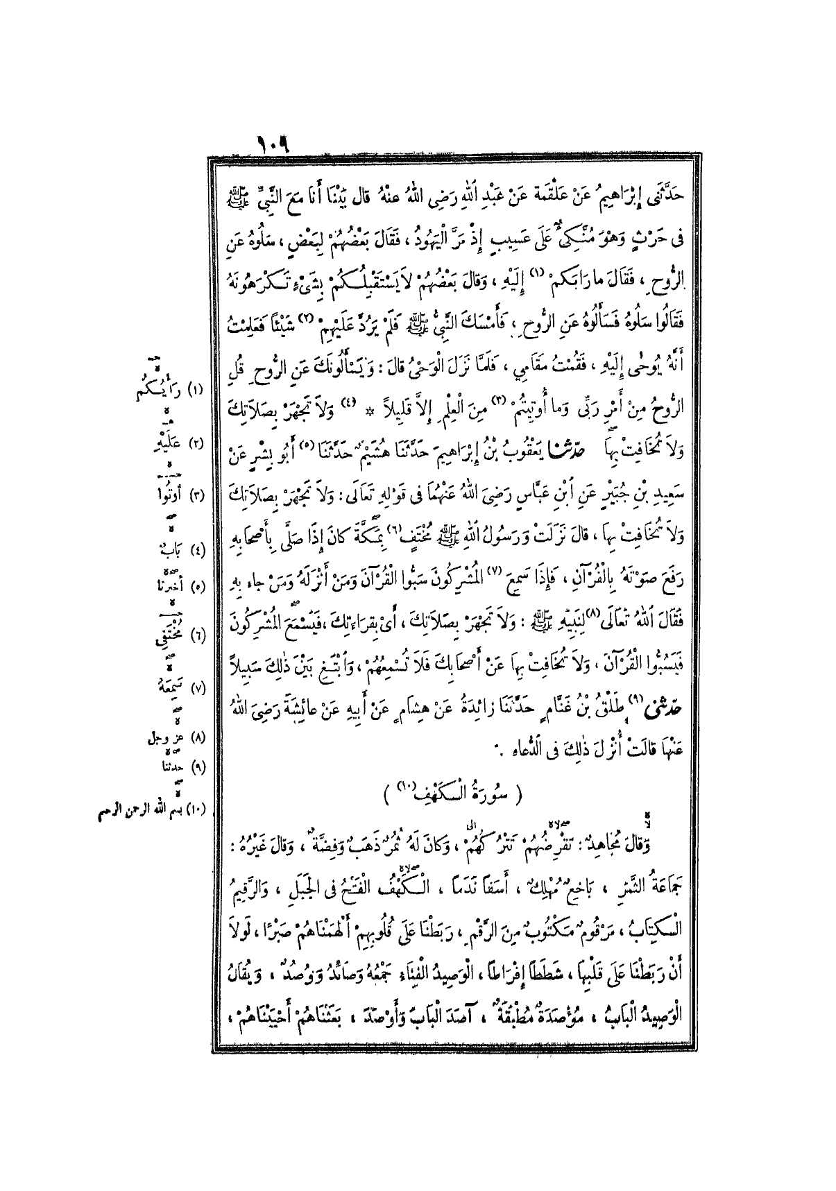 4722- حَدَّثَنَا يَعْقُوبُ بْنُ إِبْرَاهِيمَ ، حَدَّثَنَا هُشَيْمٌ ، حَدَّثَنَا أَبُو بِشْرٍ ، عَنْ سَعِيدِ بْنِ جُبَيْرٍ ، عَنِ ابْنِ عَبَّاسٍ ، رَضِيَ اللَّهُ عَنْهُمَا ، فِي قَوْلِهِ تَعَالَى : {وَلاَ تَجْهَرْ بِصَلاَتِكَ وَلاَ تُخَافِتْ بِهَا} قَالَ : نَزَلَتْ وَرَسُولُ اللهِ صَلَّى اللَّهُ عَلَيْهِ وَسَلَّمَ مُخْتَفٍ بِمَكَّةَ ، كَانَ إِذَا صَلَّى بِأَصْحَابِهِ رَفَعَ صَوْتَهُ بِالقُرْآنِ ، فَإِذَا سَمِعَ المُشْرِكُونَ سَبُّوا القُرْآنَ , وَمَنْ أَنْزَلَهُ , وَمَنْ جَاءَ بِهِ ، فَقَالَ اللَّهُ تَعَالَى لِنَبِيِّهِ صَلَّى اللَّهُ عَلَيْهِ وَسَلَّمَ : {وَلاَ تَجْهَرْ بِصَلاَتِكَ} أَيْ بِقِرَاءَتِكَ ، فَيَسْمَعَ المُشْرِكُونَ فَيَسُبُّوا القُرْآنَ : {وَلاَ تُخَافِتْ بِهَا} عَنْ أَصْحَابِكَ فَلاَ تُسْمِعْهُمْ : {وَابْتَغِ بَيْنَ ذَلِكَ سَبِيلاً}.