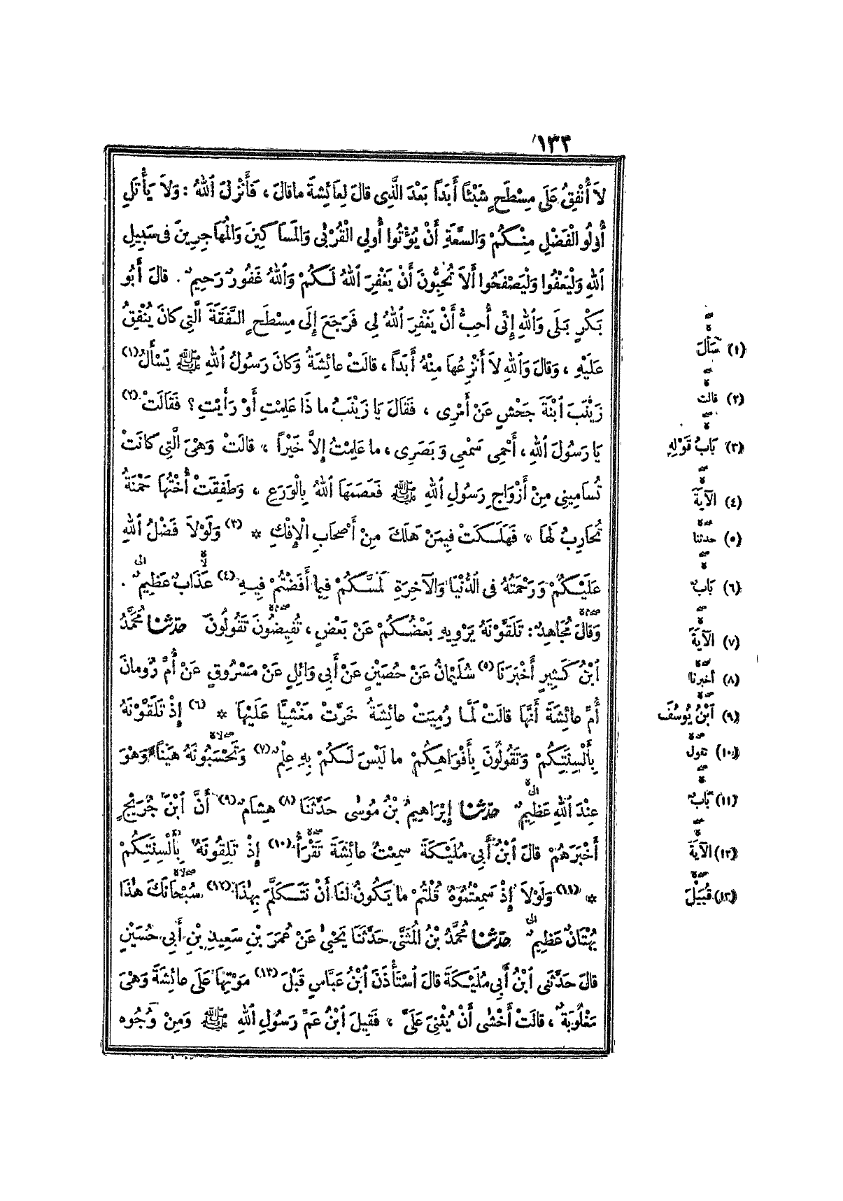 4752- حَدَّثَنَا إِبْرَاهِيمُ بْنُ مُوسَى ، حَدَّثَنَا هِشَامٌ (1)، أَنَّ ابْنَ جُرَيْجٍ أَخْبَرَهُمْ ، قَالَ ابْنُ أَبِي مُلَيْكَةَ : سَمِعْتُ عَائِشَةَ تَقْرَأُ : {إِذْ تَلَقَّوْنَهُ بِأَلْسِنَتِكُمْ}.