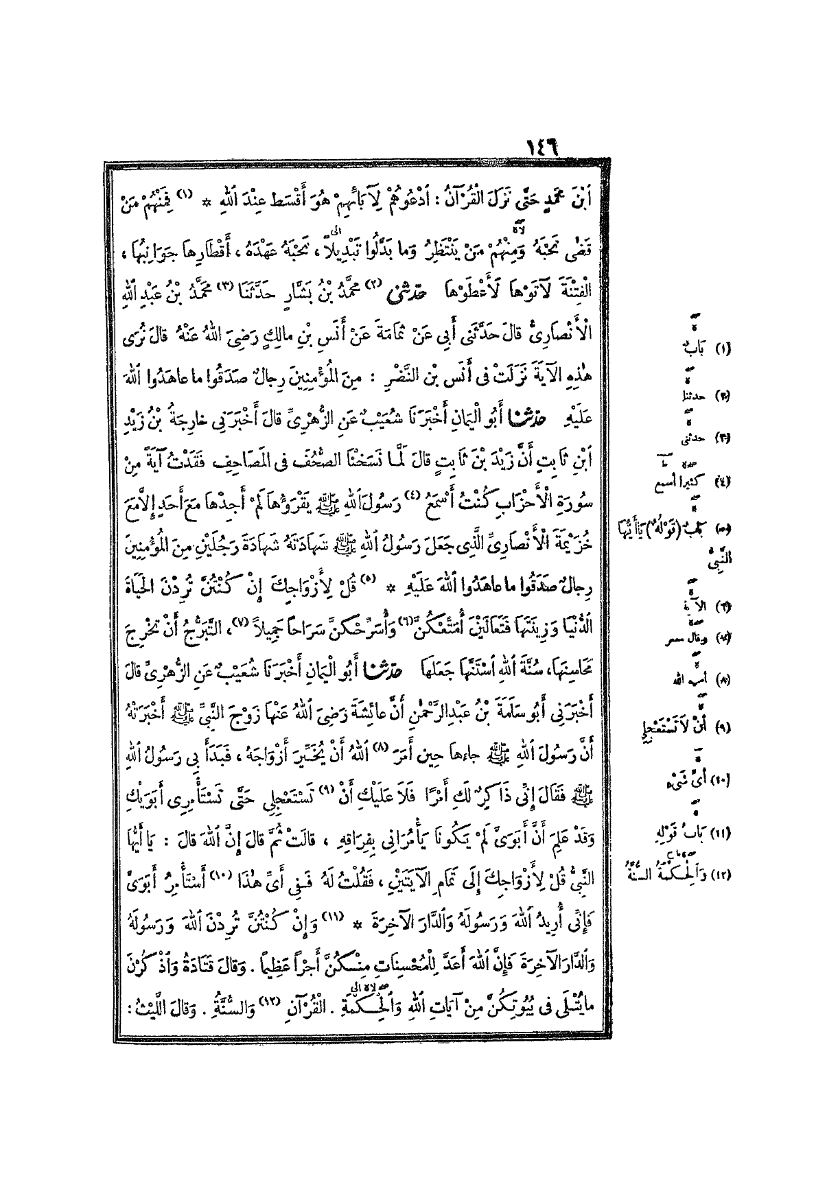 4- بَابُ : {قُلْ لأَزْوَاجِكَ إِنْ كُنْتُنَّ تُرِدْنَ الحَيَاةَ الدُّنْيَا وَزِينَتَهَا فَتَعَالَيْنَ أُمَتِّعْكُنَّ وَأُسَرِّحْكُنَّ سَرَاحًا جَمِيلاً}.