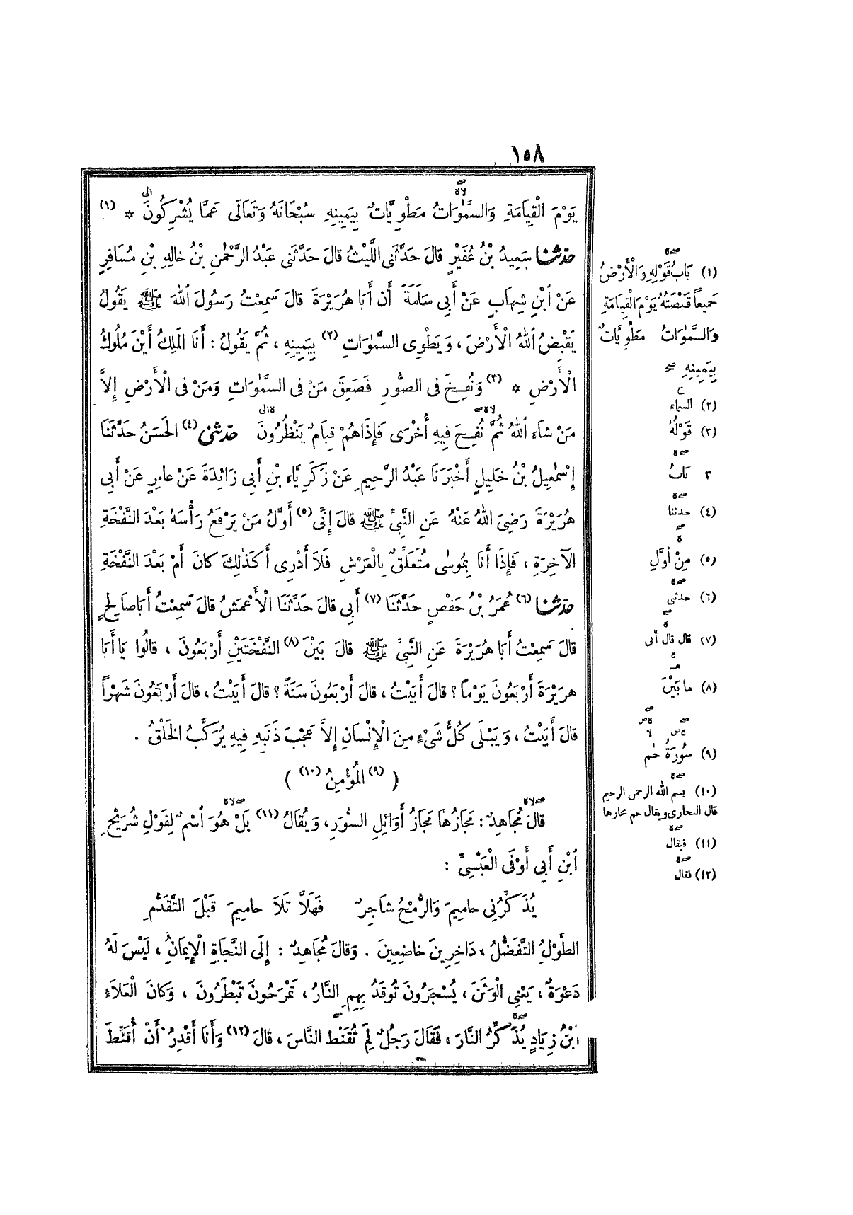 3- بَاب قَوْلِهِ : {وَالأَرْضُ جَمِيعًا قَبْضَتُهُ يَوْمَ القِيَامَةِ وَالسَّمَاوَاتُ مَطْوِيَّاتٌ بِيَمِينِهِ}.